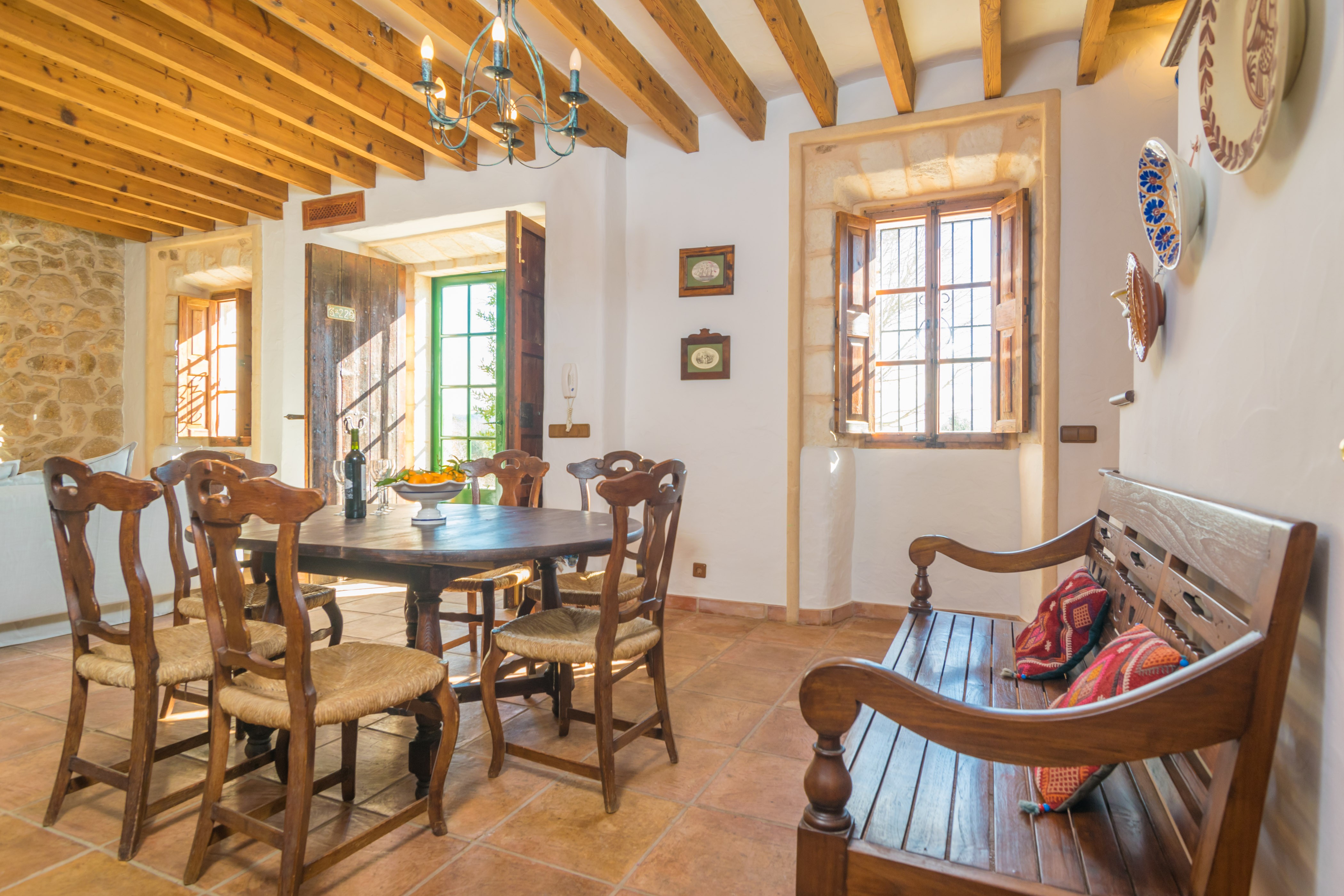 Het gebouw in Mallorcaanse stijl heeft 2 verdiepingen. U wordt verwelkomd door een ruime woon-eetkamer met tv, airconditioning en open haard. Vervolgens komt u in de keuken, welke is voorzien van een gaskookplaat, oven en nog veel meer. Boven heb je twee slaapkamers met kledingkast en airco, één met een tweepersoonsbed en de andere met twee eenpersoonsbedden en ruimte voor een kinderbedje/babybedje. Er zijn twee badkamers in het huis, één bevindt zich buiten en heeft een douche en de andere bevindt zich op de eerste verdieping en heeft een ligbad. De wasruimte beschikt over een wasmachine, strijkijzer en strijkplank.