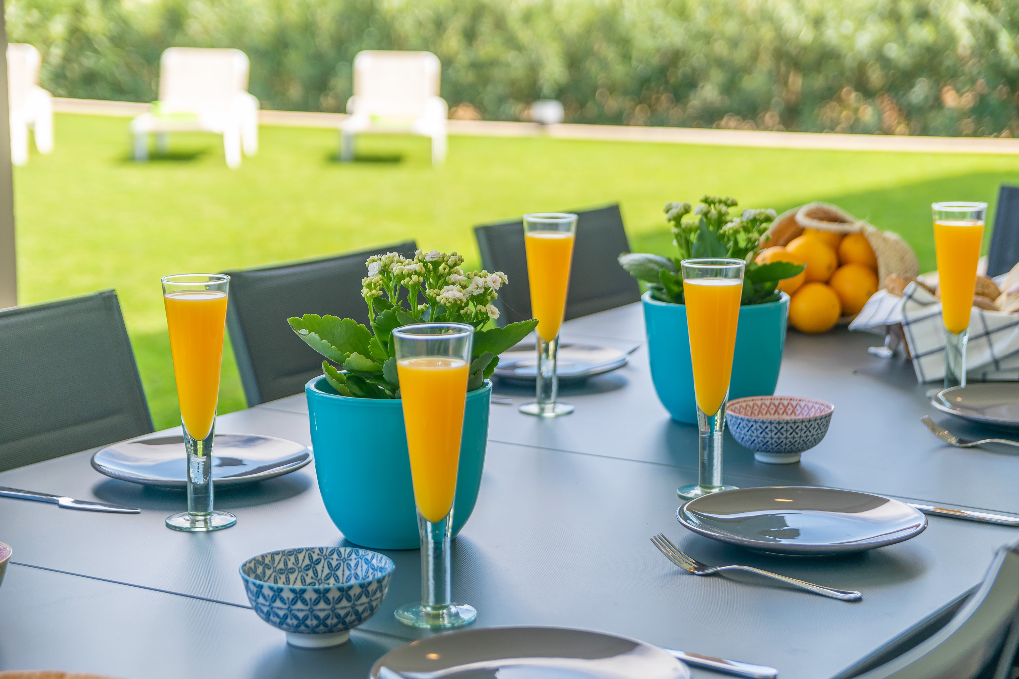 Binnen is het huis verdeeld over één verdieping in een moderne stijl, gezellig en vol licht. Vanaf de veranda komt u in de enorme woonkamer waar u kunt ontspannen op de comfortabele bank terwijl u satelliet-tv kijkt. Er is een tweede woonkamer met een bank en nog een tv. De hoofdrolspeler van het huis is ongetwijfeld de keuken, volledig uitgerust met een keramische kookplaat en alles wat u nodig heeft om tijdens uw vakantie te koken, en met een enorme en comfortabele eettafel waar u samen met uw dierbaren van uw beste gerechten kunt genieten.