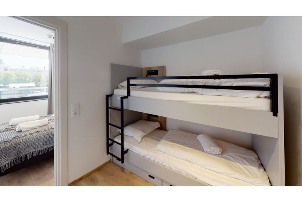 Dit nieuw vakantieverblijf voor 4 personen beschikt over een slaapkamer met tweepersoonsbed, een slaaphoek met een stapelbed voor 2 personen. Het verblijf is van alle comfort voorzien en beschikt over een gezellige woonkamer met flatscreen televisie. De open keuken is volledig uitgerust (frigo, microgolfoven, kookplaten, waterkoker, koffiezetapparaat, vaatwasser, broodrooster, potten en pannen, eetservies,…). In de badkamer is er een douche, lavabo en WC.