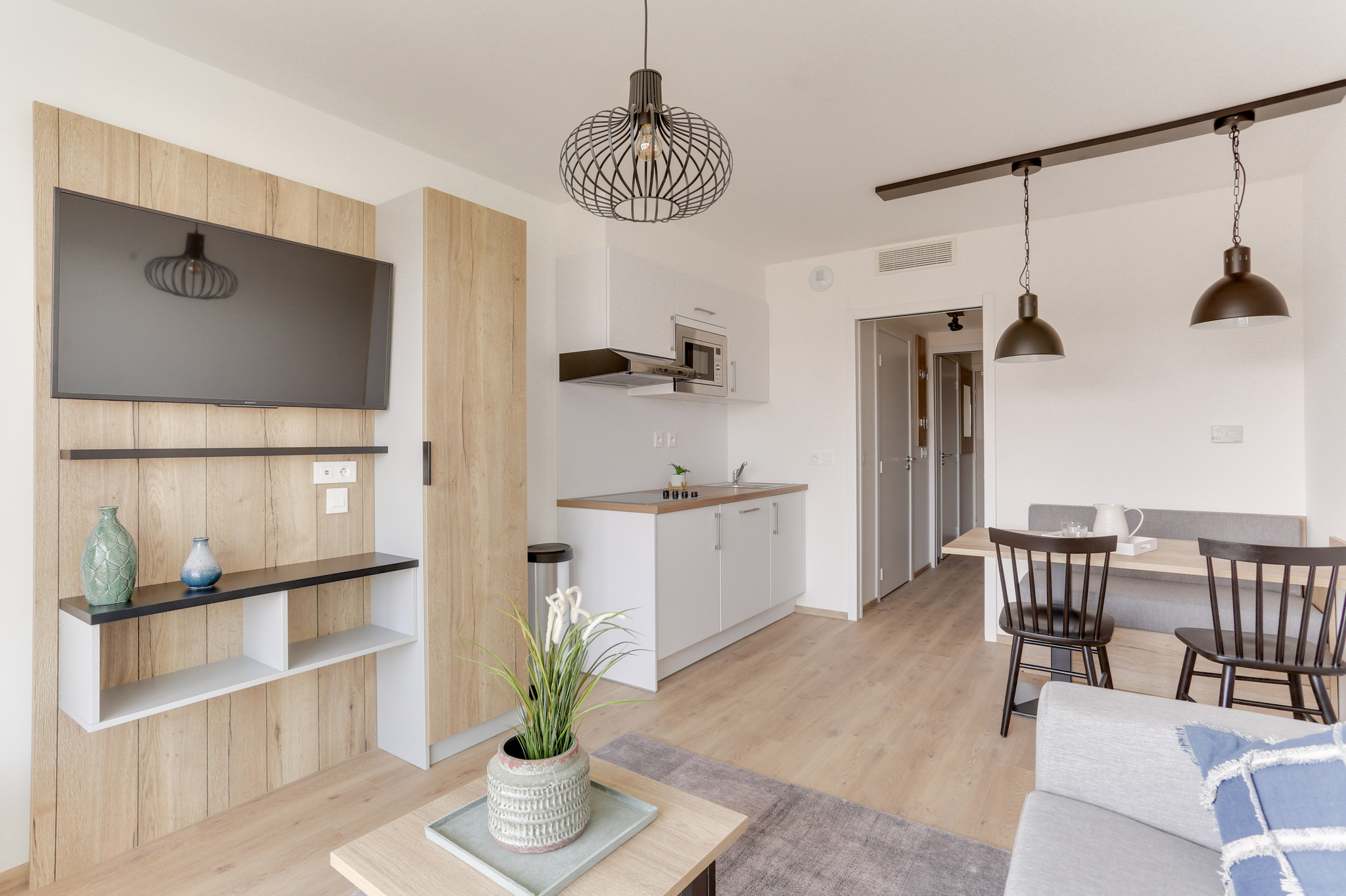 Deze nieuwe vakantiestudio voor 4 personen heeft een slaaphoek met dubbel bed voor 2 personen en een tweede slaaphoek met een stapelbed voor 2 personen. De studio is van alle comfort voorzien en beschikt over een aangename woonkamer met televisie. De open keuken is volledig uitgerust (frigo, combi microgolfoven, kookplaten, waterkoker, koffiezetapparaat, vaatwasser, potten en pannen, eetservies ,…). In de badkamer is er een douche en een lavabo. Het verblijf beschikt over een aparte WC. Er is eveneens een balkon.
