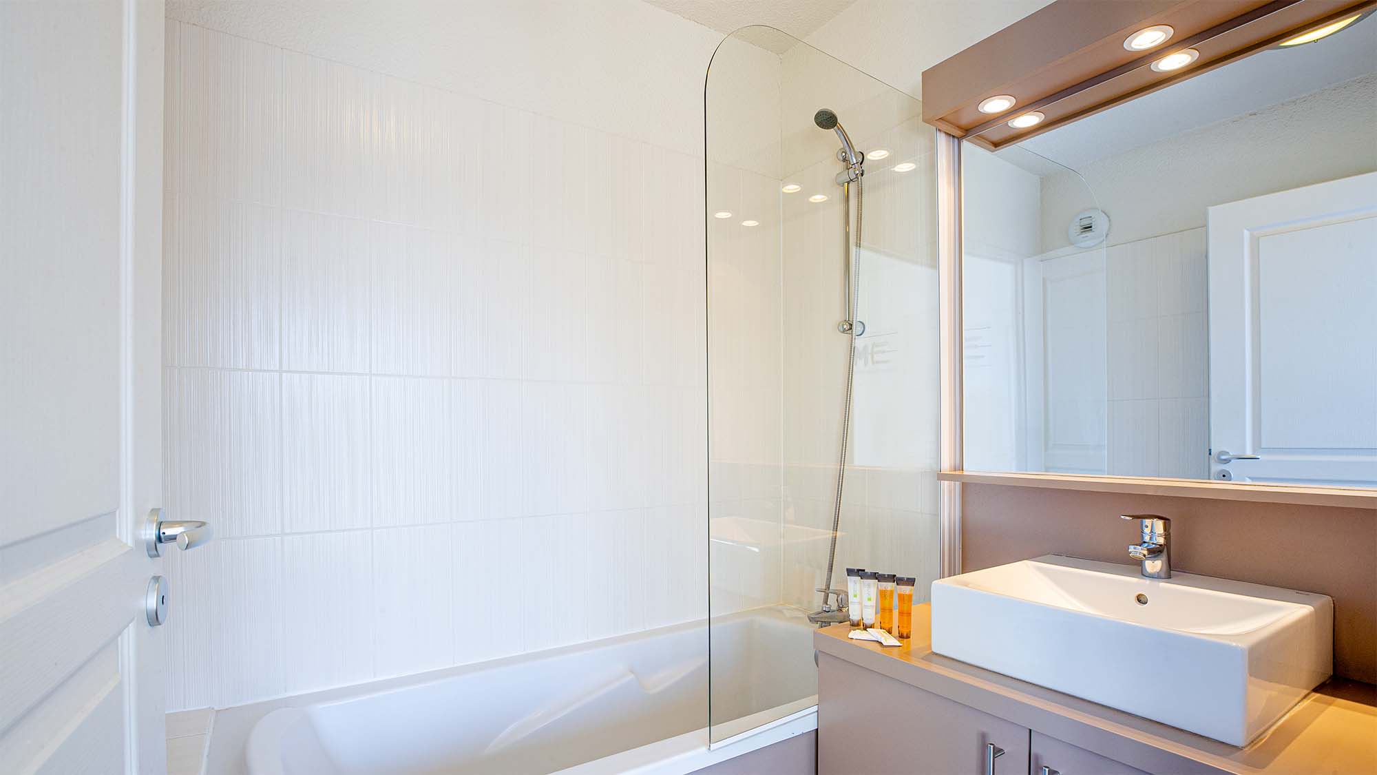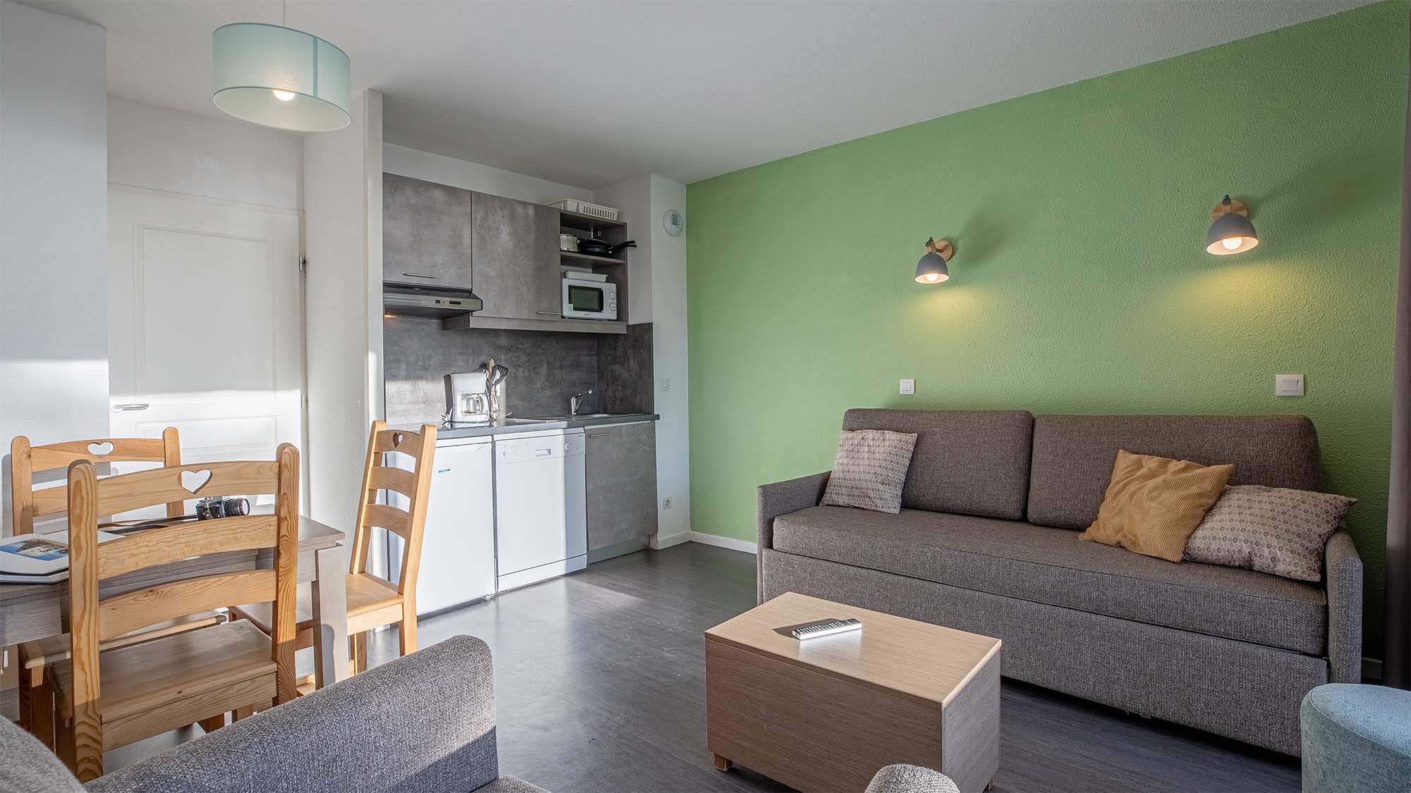 U vindt hier een woonkamer met een tweepersoonsslaapbank of uitschuifbedden, geschikt voor kinderen, een slaapkamer met een tweepersoonsbed of twee eenpersoonsbedden, een badkamer met een bad en aparte toilet ( niet apart voor de appartementen geschikt voor mindermobiele personen) Er is een extra eenpersoonsslaapbank in de woonkamer.