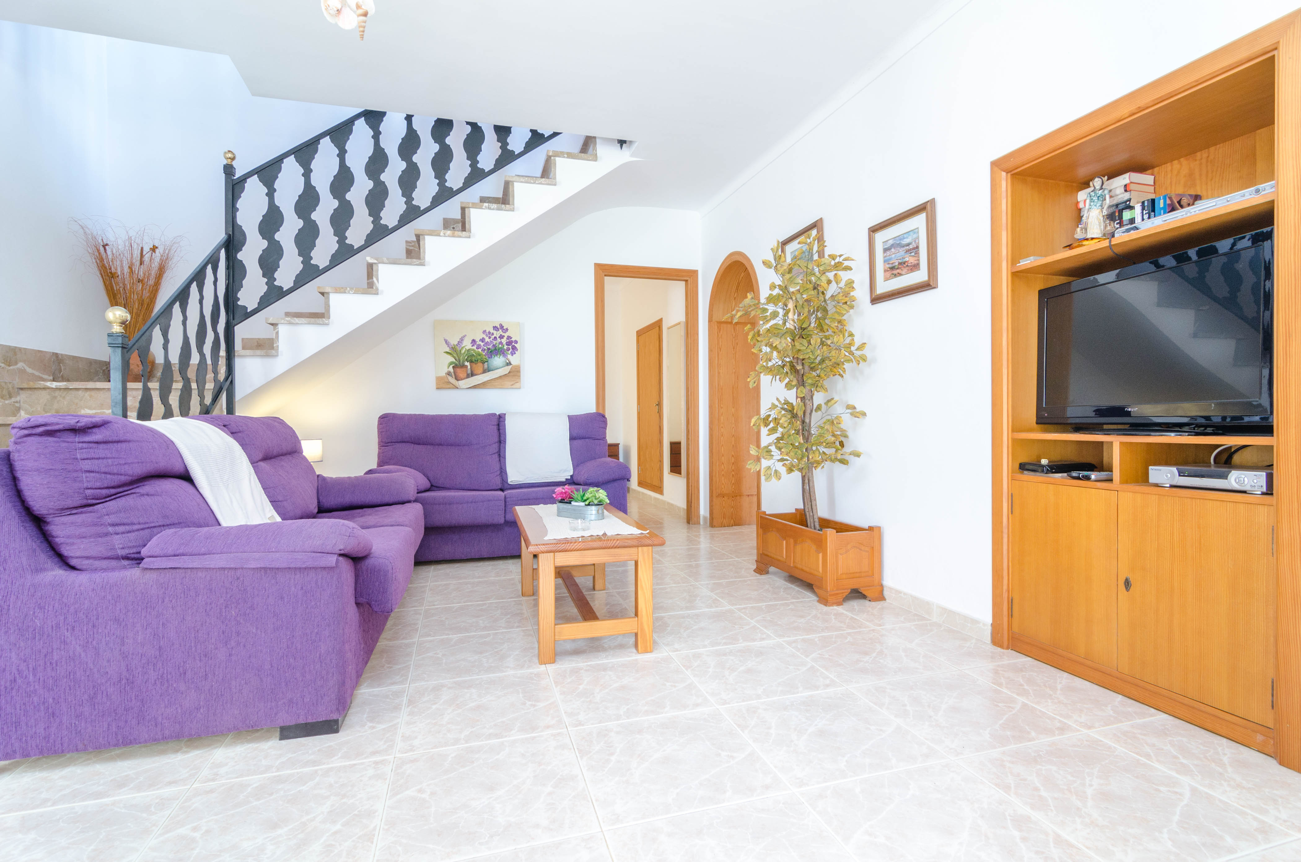 Op de begane grond voelt u zich thuis in de open eetkamer, waar u naar de satelliet-tv kijkt, en de uitgeruste gaskeuken beschikt over alle nodige voorzieningen om smakelijke gerechten te bereiden. Drie van de slaapkamers, twee met een tweepersoonsbed en één met twee eenpersoonsbedden, nodigen uit om na een lange dag weg te dromen. Er is ook een badkamer met een douche. Als u met uw baby reist, voorzien wij u van een kinderbedje en een kinderstoel. Het huis beschikt ook over een wasruimte met een wasmachine, een strijkijzer en een strijkplank.