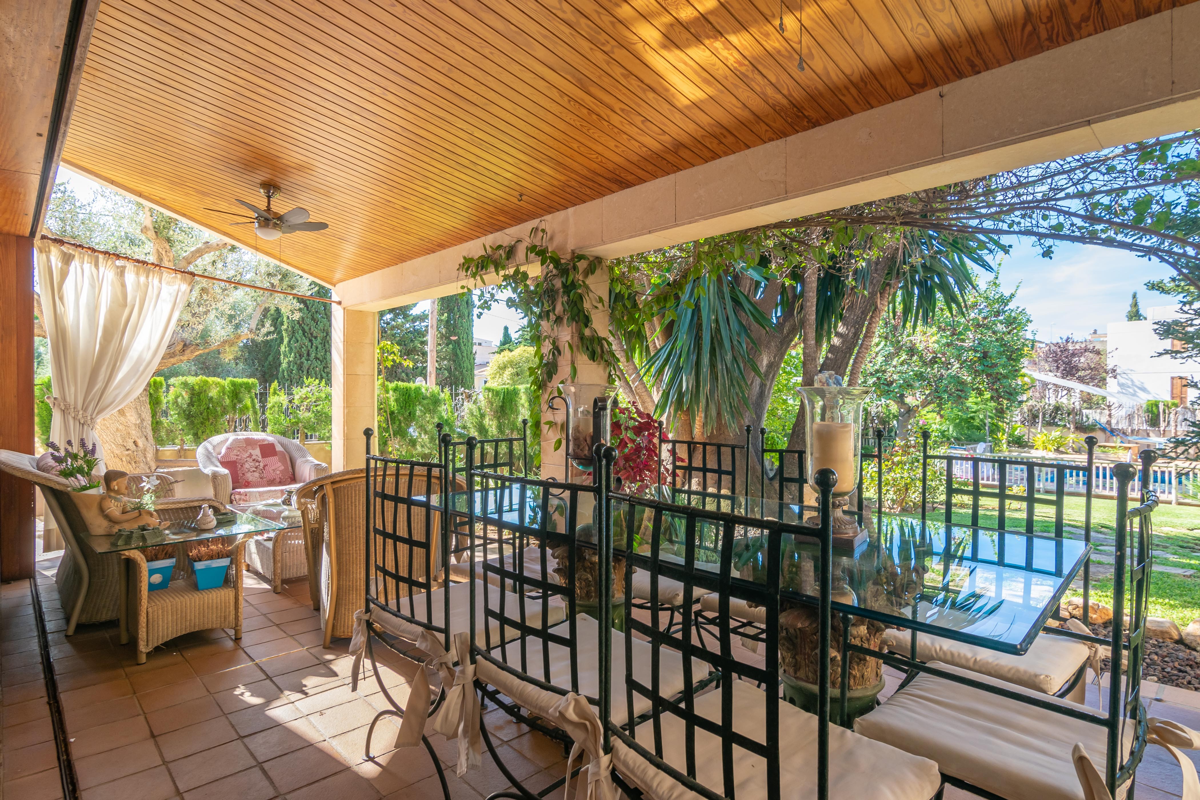 Het interieur van het huis valt op door de verzameling kunstwerken die gepaard gaan met een klassieke en exclusieve inrichting. Bij de ingang verwelkomt de hoofdkamer ons met de spectaculaire vleugel. Er is nog een grote eetkamer waar u tv kunt kijken en samen kunt eten; een grote bibliotheek met TV-sat en AC; nog een eetkamer voor 6 personen; en de indrukwekkende keuken-eetkamer met een inductiekookplaat, airconditioning en toegang tot een van de terrassen. De onafhankelijke wasruimte is uitgerust met een wasmachine, droger, strijkijzer en strijkplank. Een slaapkamer met een tweepersoonsbed en een ventilator, 2 badkamers met douche en één met ligbad completeren de begane grond. Op de eerste verdieping zijn er 4 slaapkamers, allemaal met airconditioning en een tweepersoonsbed, behalve één met twee eenpersoonsbedden. Eén ervan heeft ook een en-suite badkamer met douche en er is nog een badkamer met douche en ligbad. Ten slotte kunnen wij een kinderbedje en een kinderstoel regelen als u met uw baby reist.