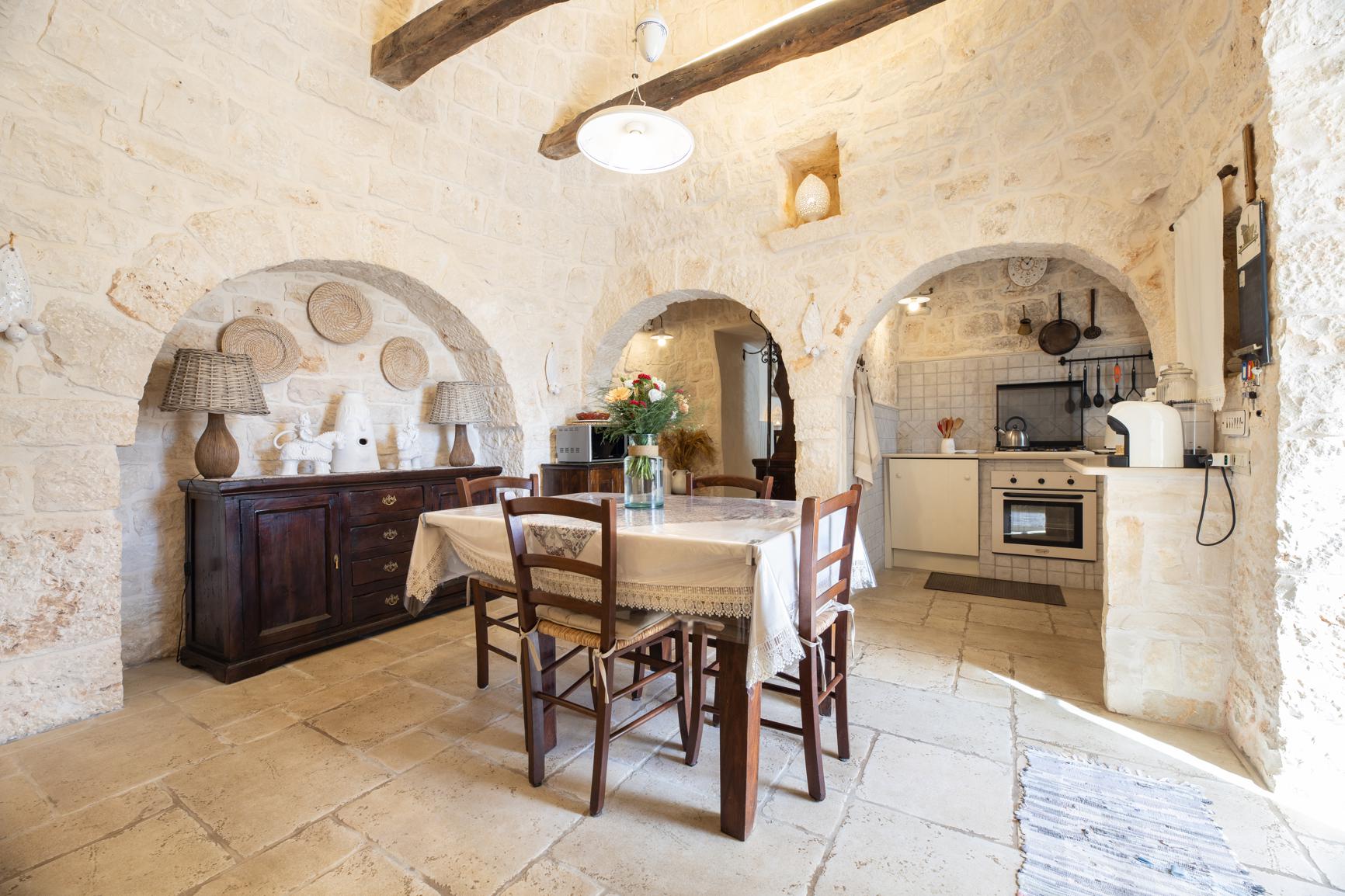 Genesteld in Alberobello biedt de 100 m² grote villa Trullo Gioia met privézwembad comfortabele accommodatie voor maximaal vier personen, waardoor een rustige en gezinsvriendelijke omgeving ontstaat. De begane grond beschikt over twee aparte slaapkamers: een hoofdslaapkamer met een tweepersoonsbed en een eigen badkamer met douche/toilet, en een tweede slaapkamer met twee eenpersoonsbedden, gunstig gelegen nabij een extra badkamer met douche/toilet. De villa beschikt over een volledig uitgeruste keuken met: