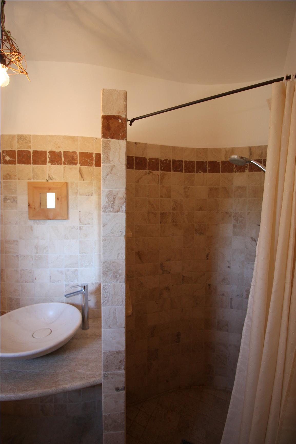 Deze charmante trullo, gelegen op de begane grond, biedt een comfortabele en gezellige ruimte voor maximaal vier gasten. Het interieur bestaat uit een knusse slaapkamer met een tweepersoonsbed en een volledig uitgeruste badkamer met douche en bidet. Voor extra gemak is er in de woonkamer een slaapbank voor extra slaapplaatsen.