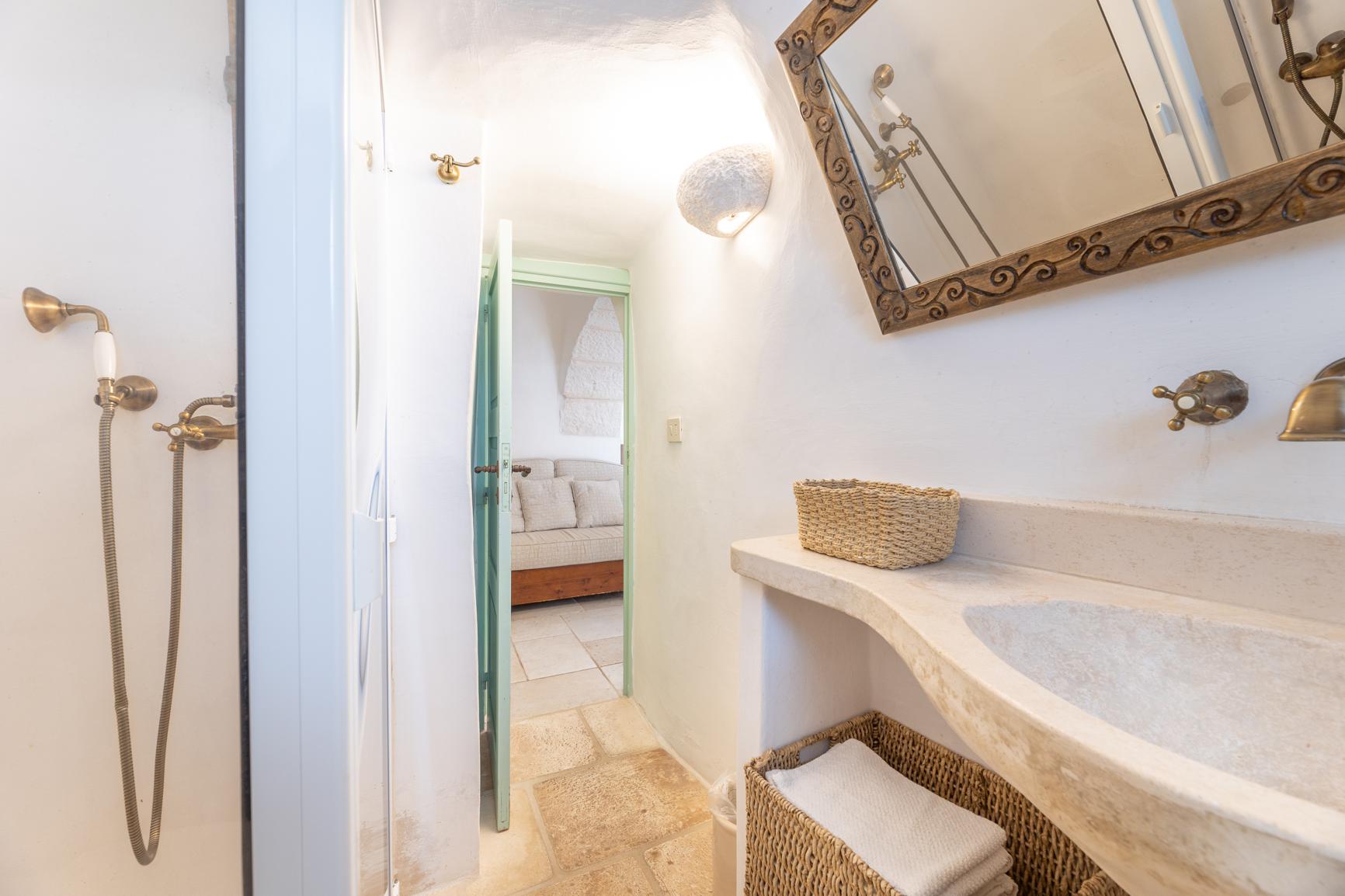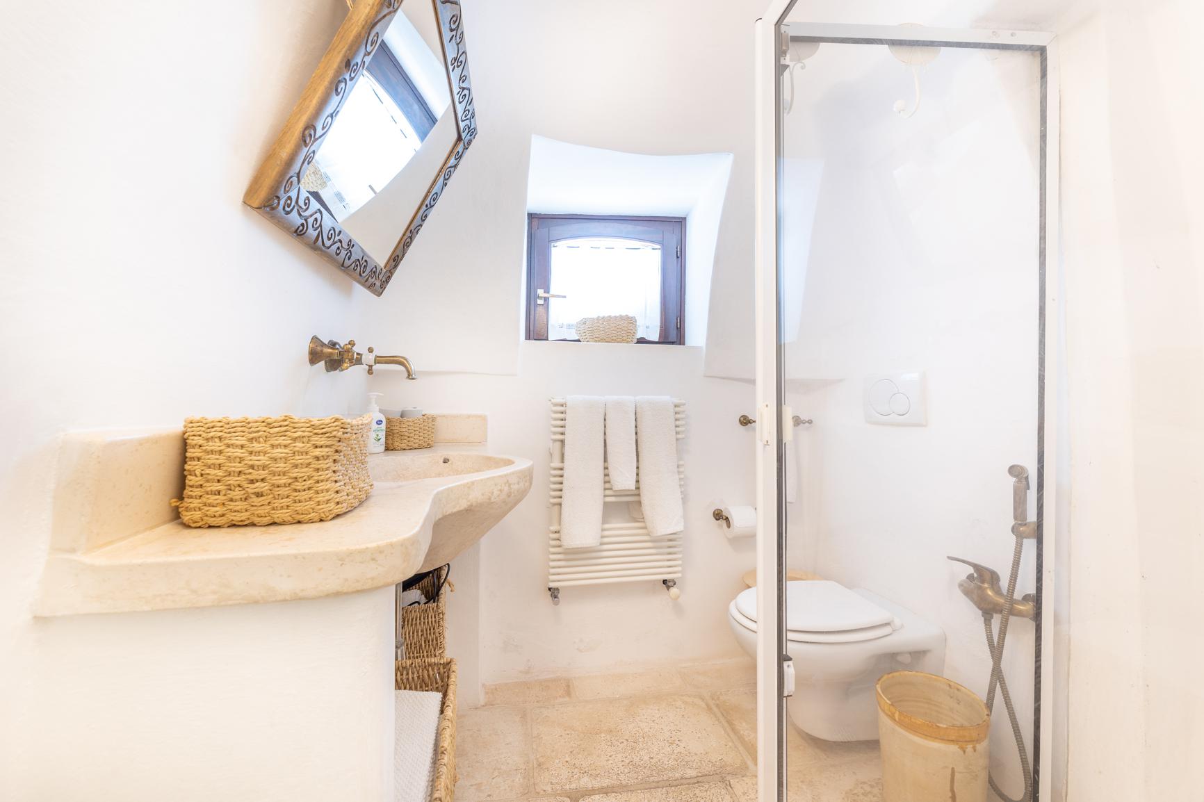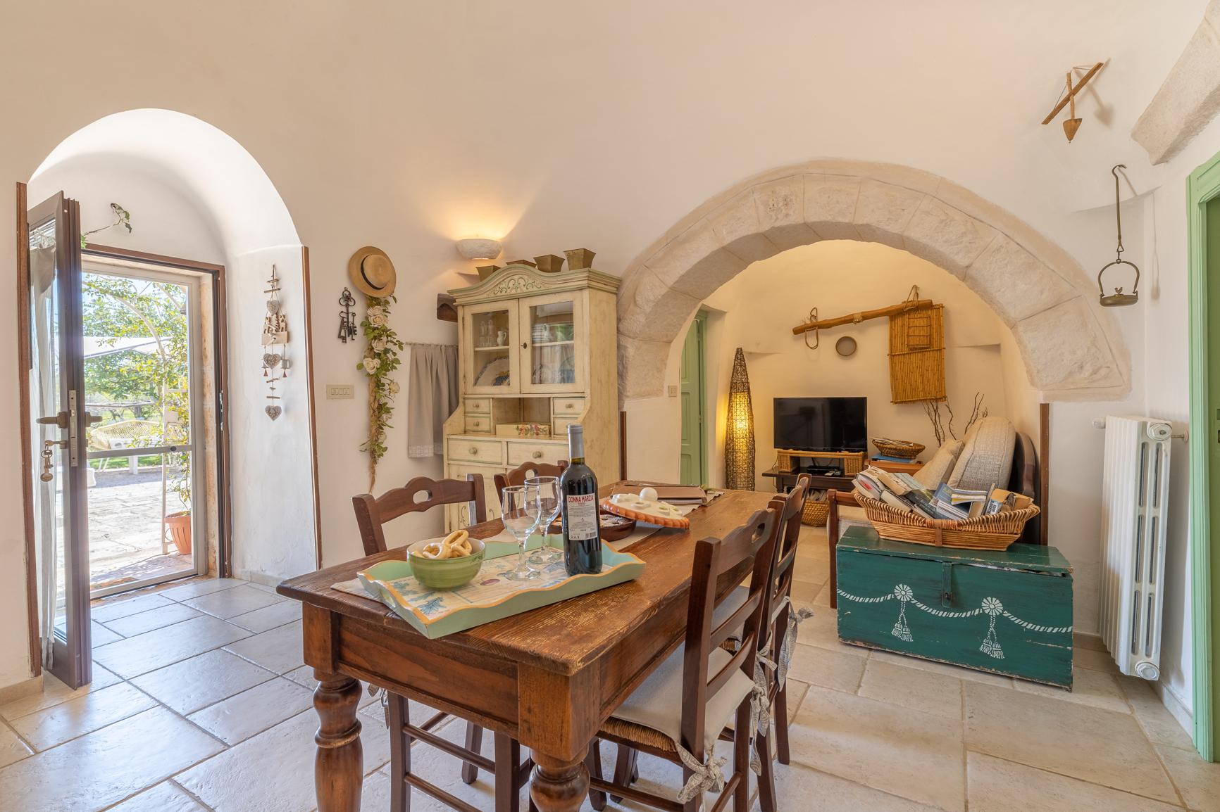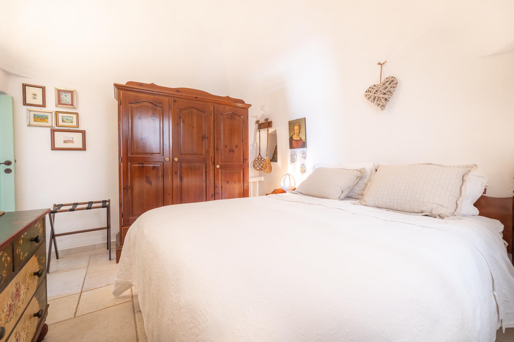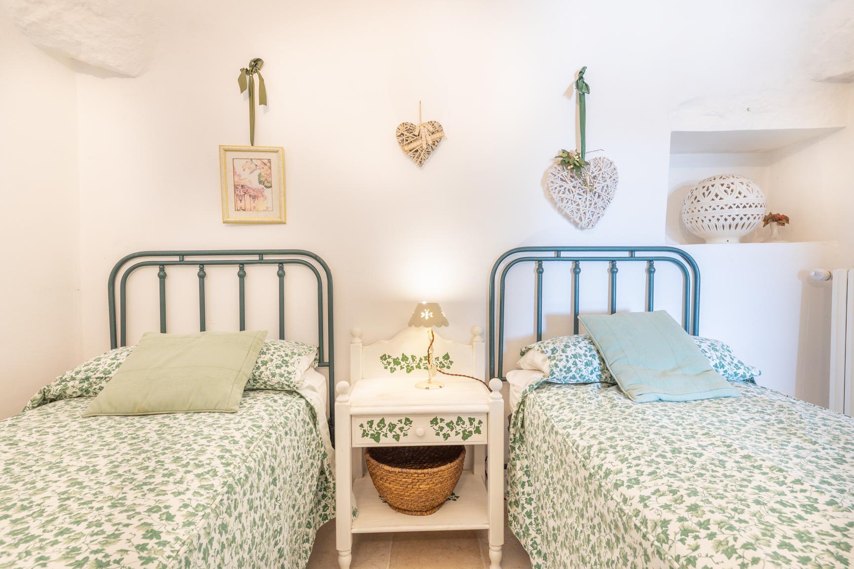 Dit charmante historische trullo bevindt zich op de begane grond en biedt een gezellige en authentieke sfeer, ideaal voor maximaal vier gasten. Binnen heeft de woning twee uitnodigende slaapkamers - één met een tweepersoonsbed en de andere met twee eenpersoonsbedden - en een complete badkamer met douche en bidet.