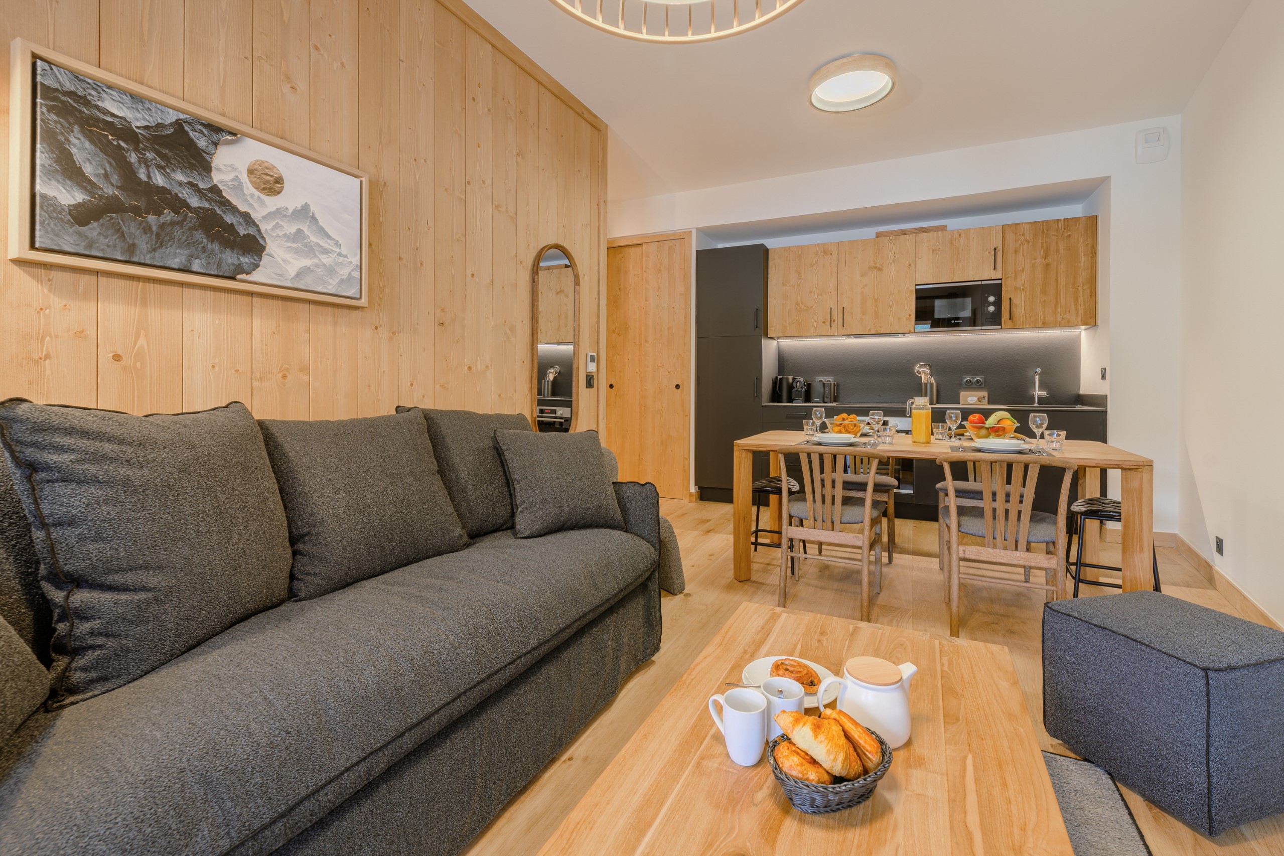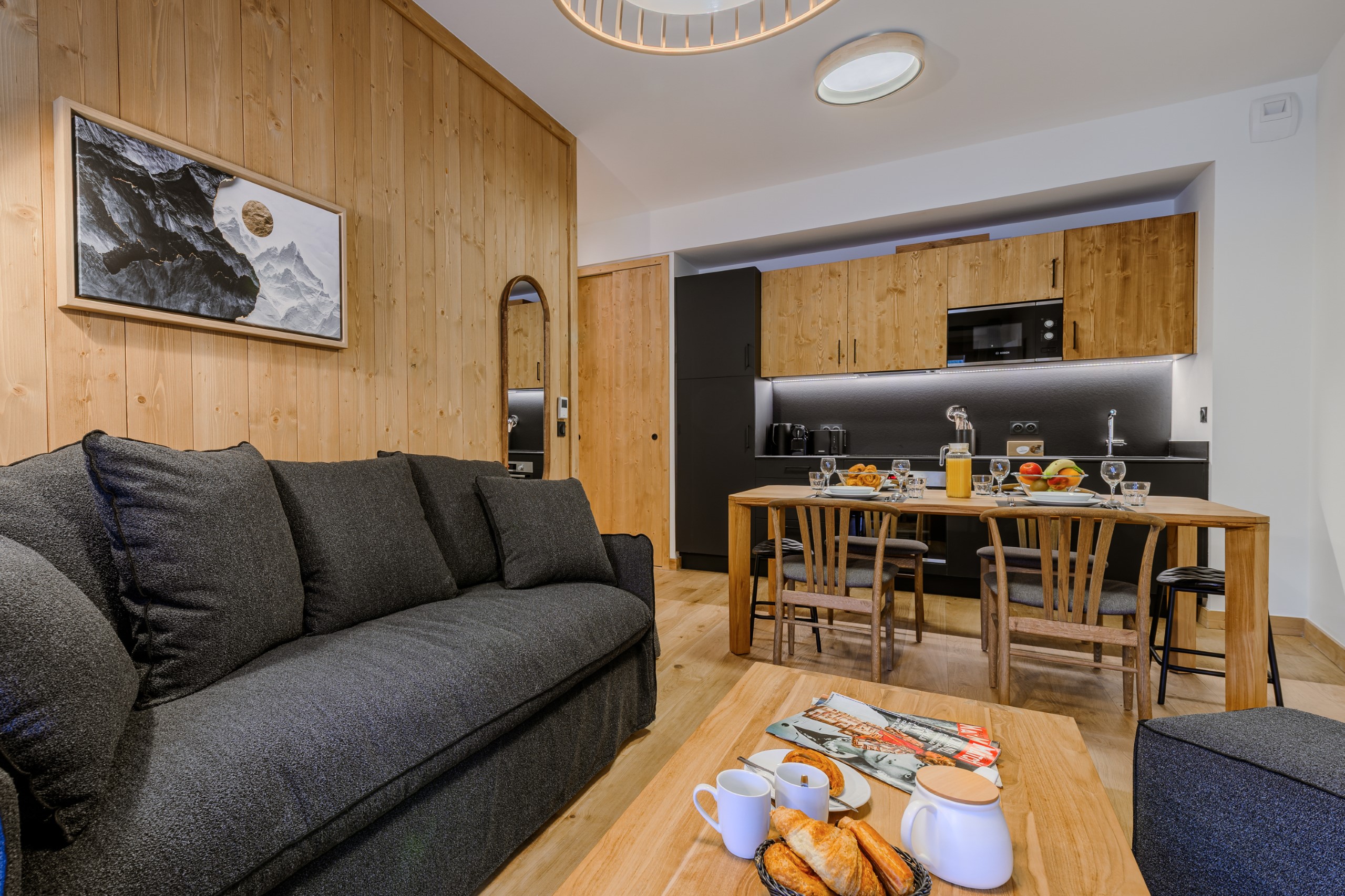 Alle appartementen zijn uitgerust met een woonkamer met een slaapbank (met uitzondering van studio's). Elk appartement heeft een flatscreen-tv met digitale televisie en een open keuken die volledig is uitgerust met een keramische kookplaat, oven, magnetron, vaatwasser, koelkast, koffiezetapparaat, broodrooster en waterkoker. U vindt er ook een complete set serviesgoed en bestek.