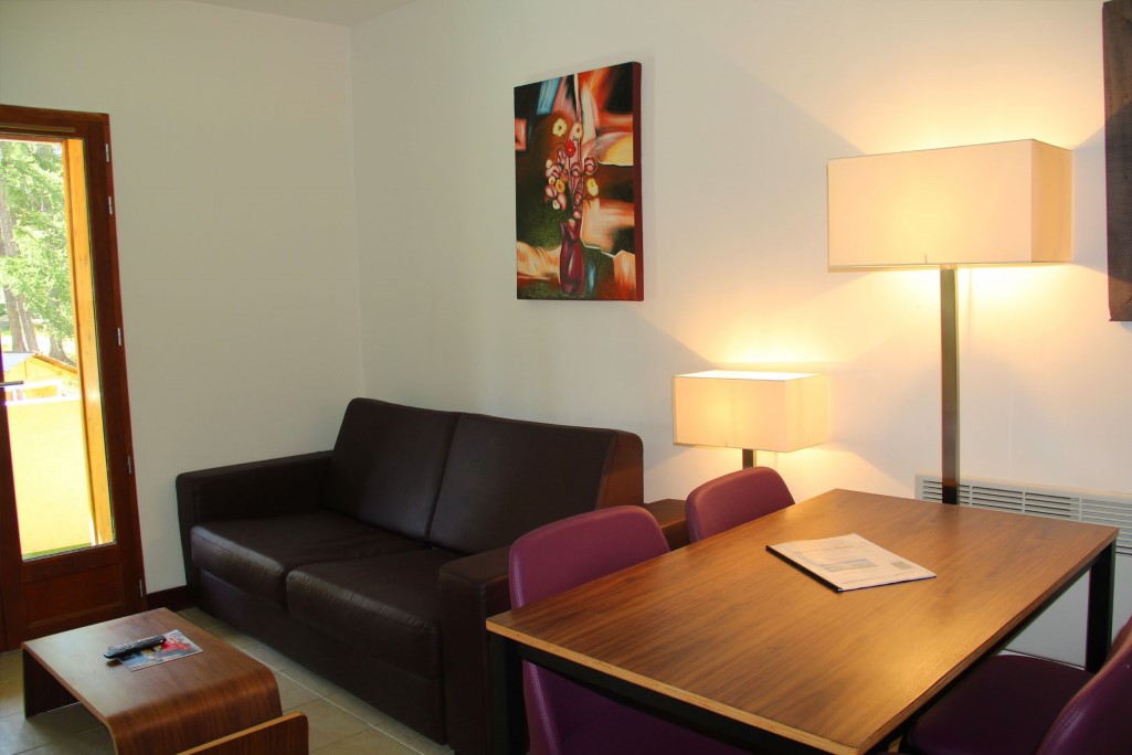 T2: oppervlakte tussen 25 et 33m² bestaat uit een bedbank 140/190 in de woonkamer en een tweepersoonsbed 140/190 in een andere kamer met tv in de kamer, TV in de woonkamer - kitchenette (magnetron-afwasmachine-koelkast-keramische kachel) - badkamer en een terras.