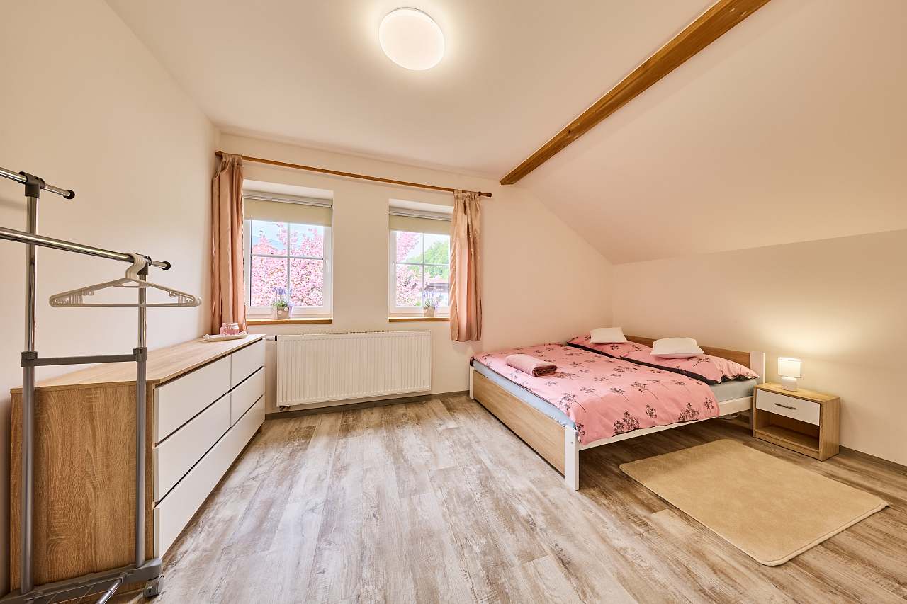 Alle slaapkamers zijn voorzien van een tweepersoonsbed, nachtkastje, kledingkast en kledingrek.
