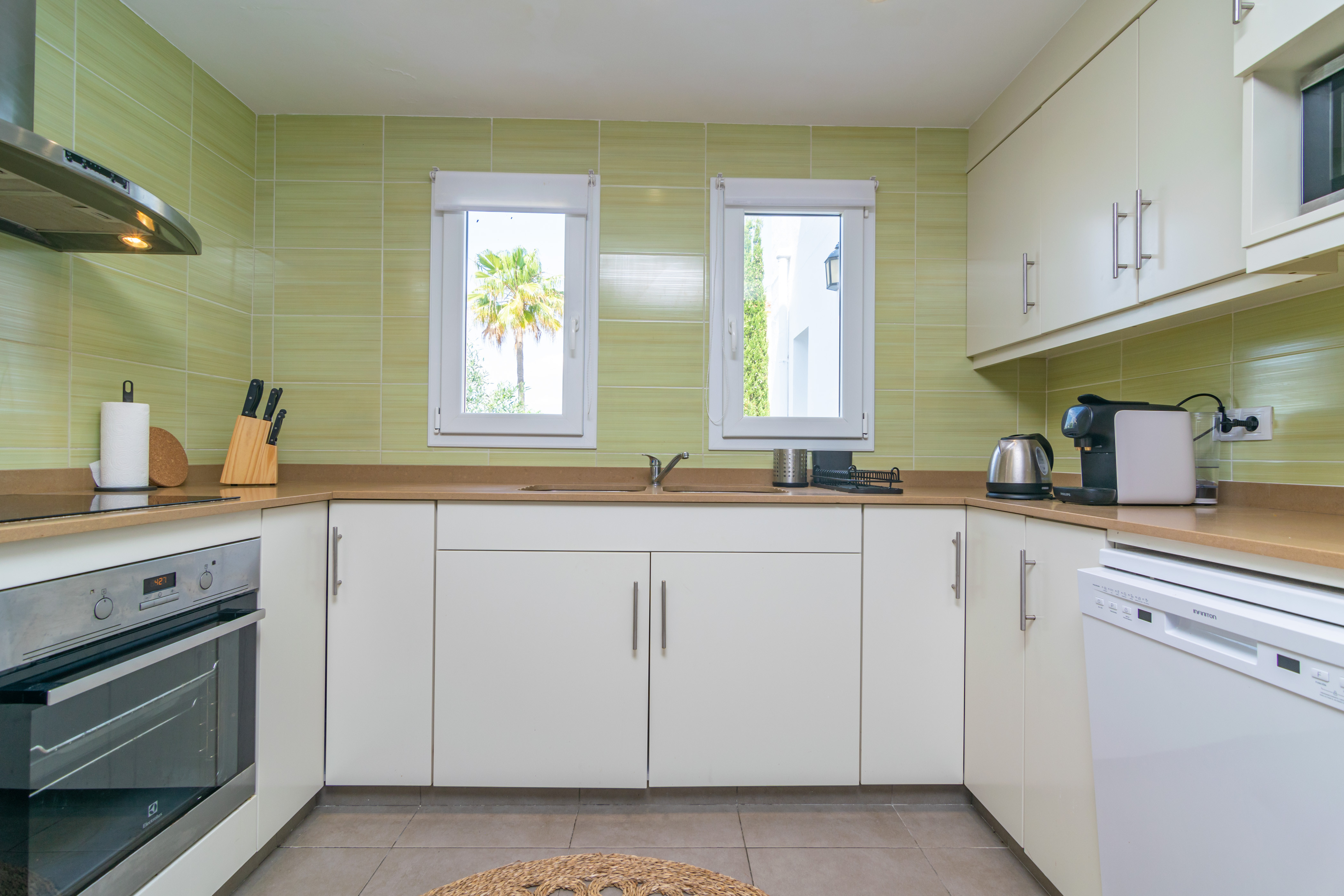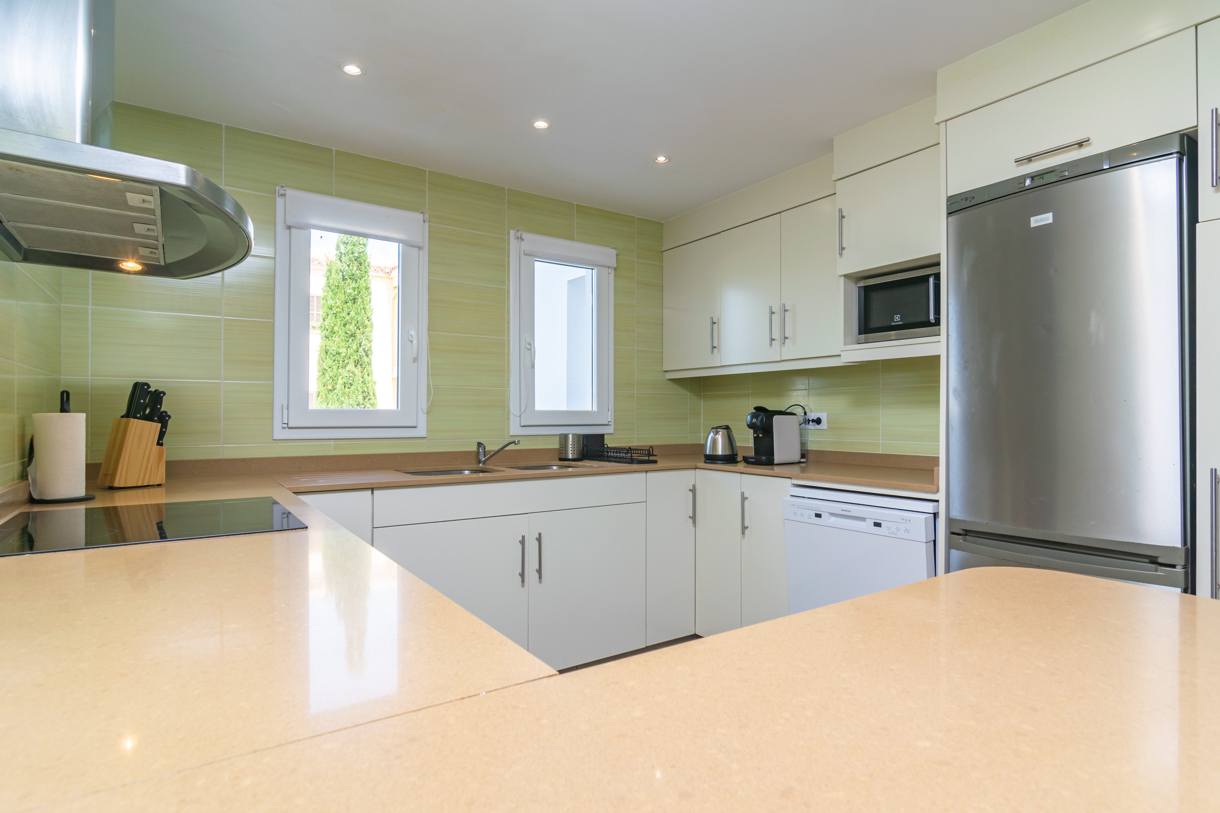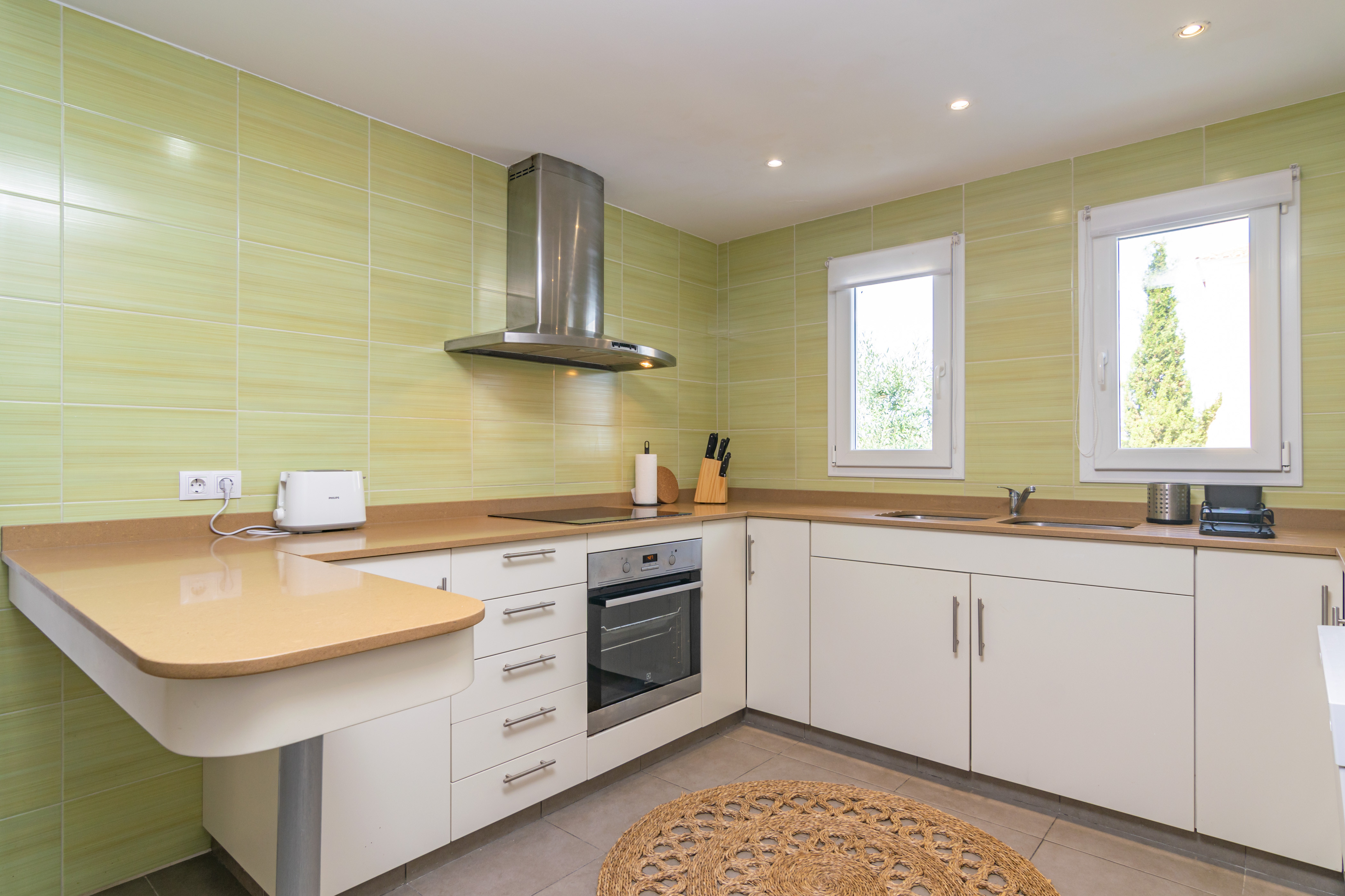 Deze villa is verdeeld over twee verdiepingen met aparte ingangen, daarom is het perfect om te genieten van een vakantie met uw familie of vrienden zonder wat privacy en rust op te geven. Beide hebben een woonkamer met airconditioning en smart-tv en een open inductiekookplaat met alles wat u nodig hebt om uw favoriete recepten te koken. Als het gaat om slapen, zijn er 7 slaapkamers. Op de begane grond zijn er drie slaapkamers met twee eenpersoonsbedden, waarvan er twee een eigen badkamer hebben met respectievelijk een douche en een bad. De vierde slaapkamer heeft een tweepersoonsbed en een eigen badkamer met douche. Alle kamers op de begane grond zijn voorzien van airconditioning. Op de eerste verdieping zijn er nog drie slaapkamers, twee met twee eenpersoonsbedden en uitgerust met radiator en plafondventilator en een derde met tweepersoonsbed uitgerust met airconditioning en een eigen badkamer met douche. Een badkamer met douche completeert elke verdieping. Als u met uw baby reist, kunnen we een kinderbedje en kinderstoel verstrekken.