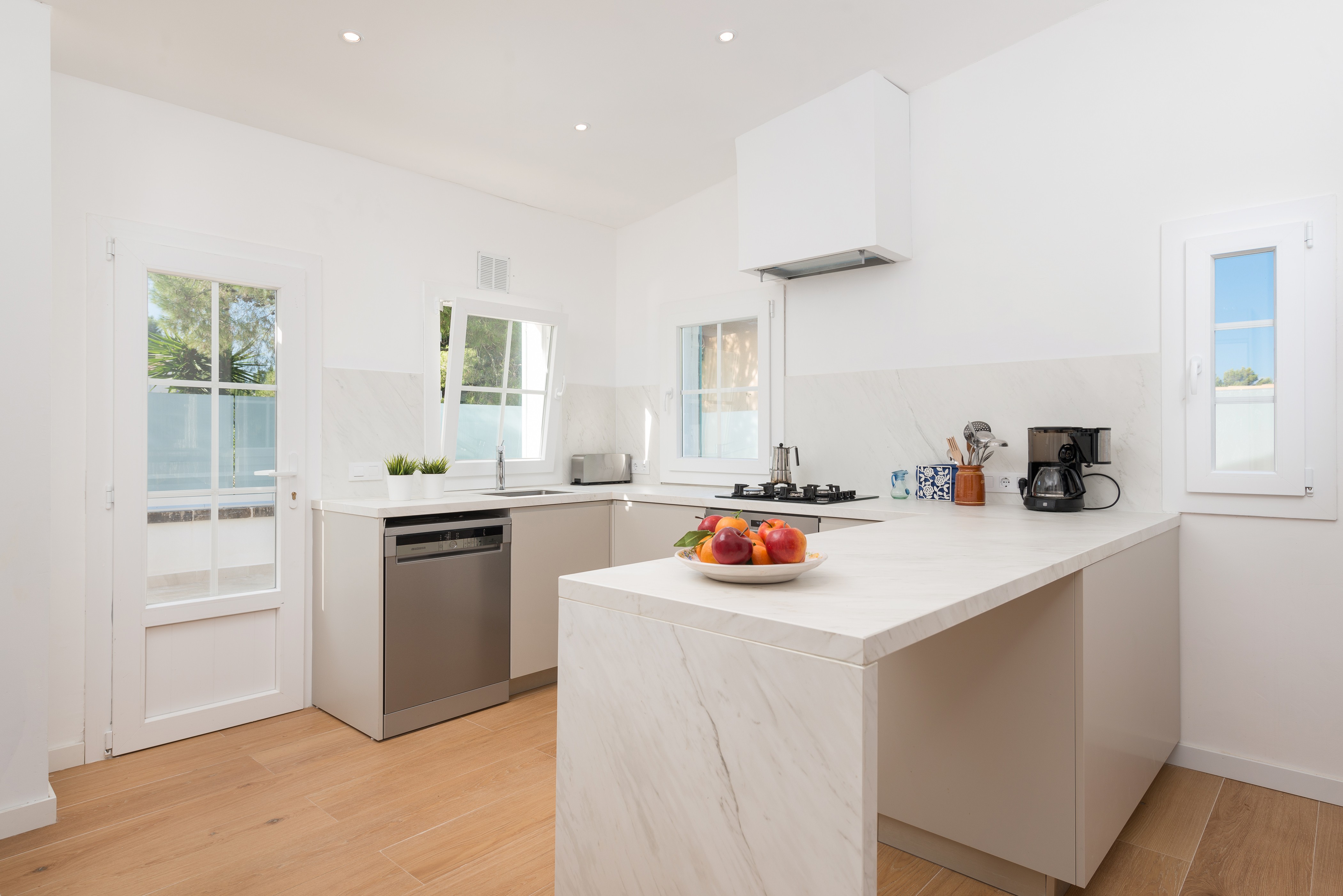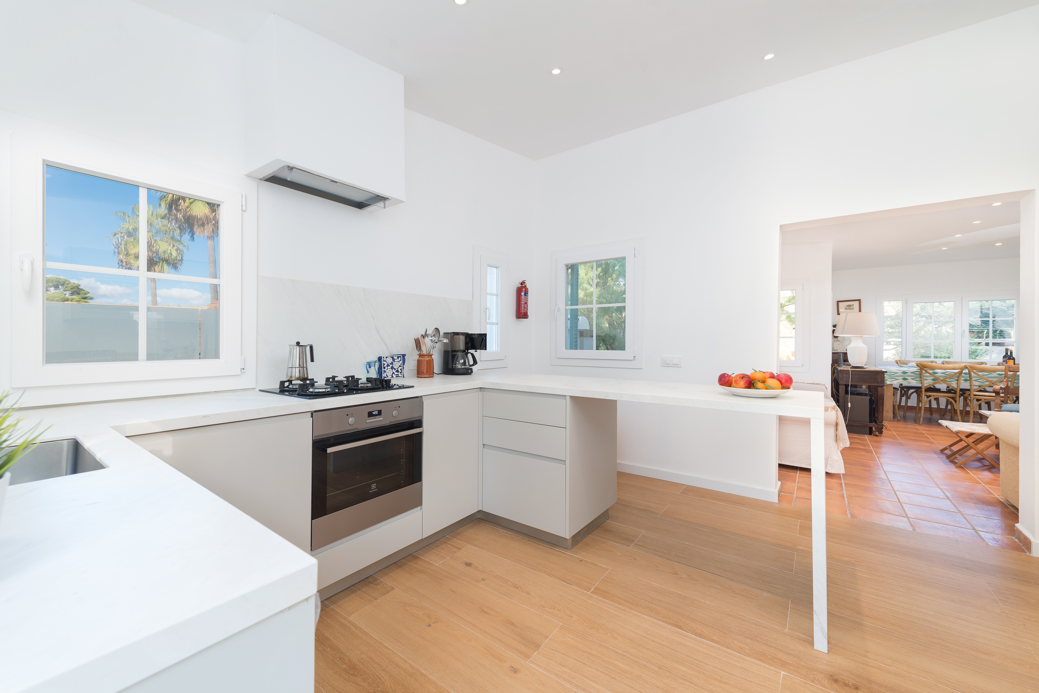 Direct wanneer u het huis binnenkomt, ontmoet u een gezellige woon-eetkamer met satelliet-tv en airconditioning. De vernieuwde keuken met gaskookplaat biedt alle apparatuur en keukengerei die u nodig heeft om uw beste gerechten te bereiden. Er zijn 3 slaapkamers met elk een kast en AC. Eén heeft een tweepersoonsbed en een eigen badkamer met douche, en de andere twee hebben twee eenpersoonsbedden en uitgang naar het terras. Voor de kleine is er een babybedje en een kinderstoel aanwezig. Het huis is ook uitgerust met een wasmachine, een wasdroger, een strijkijzer en een strijkplank.