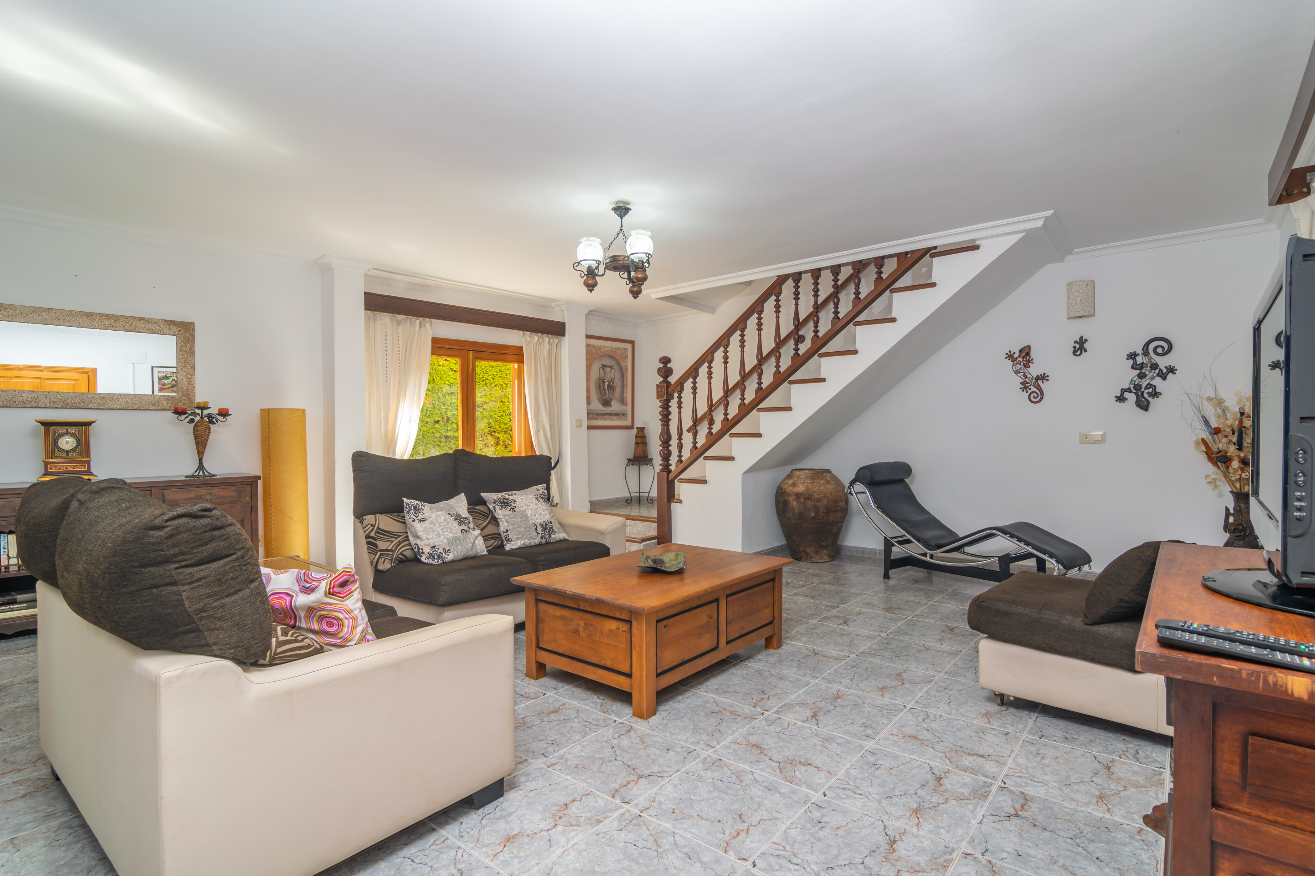 Het huis van 300 m2 is verdeeld over twee verdiepingen en heeft zes slaapkamers, twee op de begane grond met elk twee eenpersoonsbedden en vier op de eerste verdieping, twee met tweepersoonsbedden en twee met elk een eenpersoonsbed. Een kinderbedje en een kinderstoel zijn aanwezig. Er zijn vier badkamers die het hele huis bedienen, één op de eerste verdieping met een douche en drie op de begane grond, allemaal met een douche. De woonkamer is erg gezellig en heeft een grote bank, een tafeltje en een TV-Sat. De keuken-eetkamer, onafhankelijk en in vitro, heeft alle benodigde keukengerei om probleemloos te kunnen koken. Er is een wasmachine, strijkijzer en strijkplank.