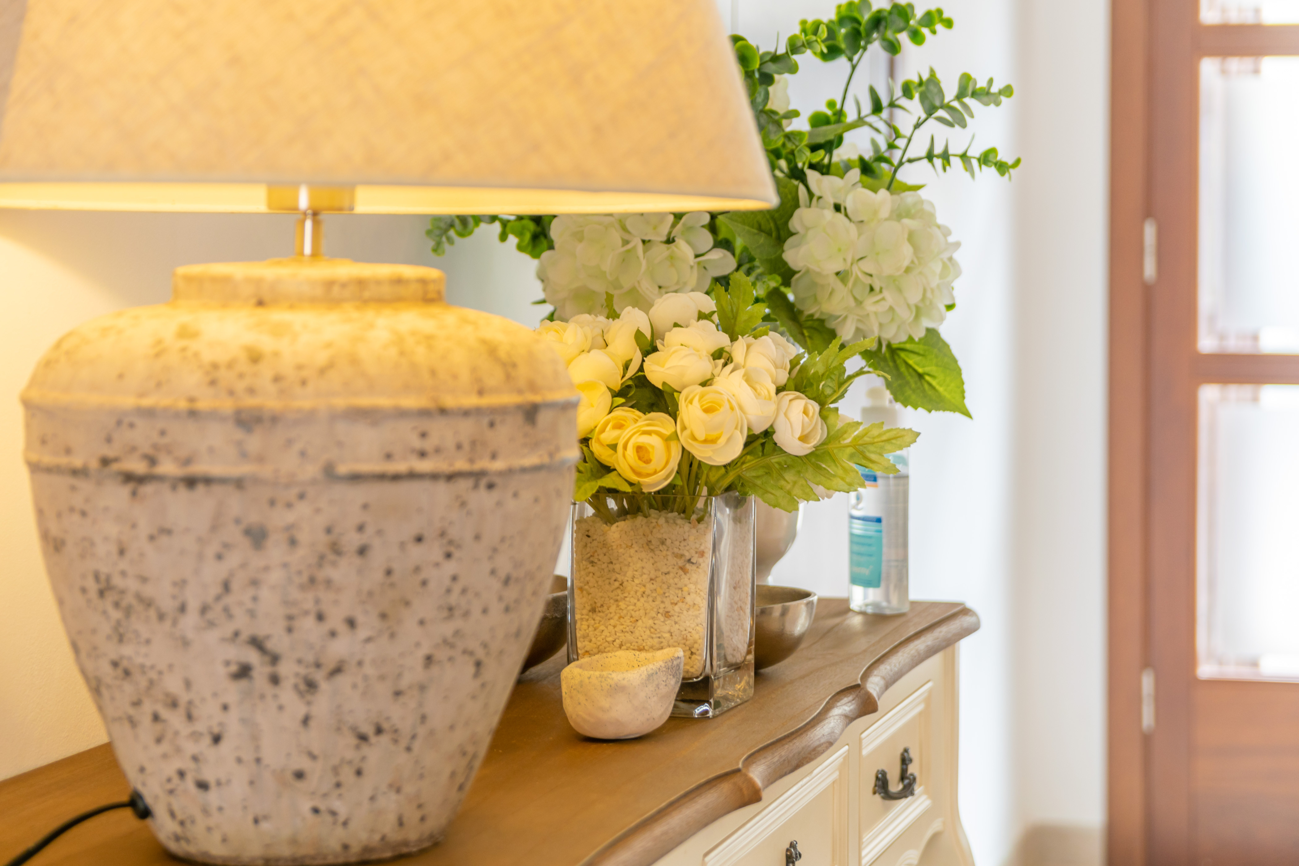 Verdeeld over twee verdiepingen, is het interieur van het huis ontworpen om u de rust te bieden die u verdient. Op de begane grond is er een woonkamer uitgerust met Smart TV en satelliet-tv, zodat u kunt genieten van uw favoriete programma's en u zich thuis kunt voelen. De eetkamer grenst aan de keuken en heeft direct toegang tot het terras en het zwembad. U kunt heerlijke gerechten bereiden in de vitrokeramische keuken, die is uitgerust met al het keukengerei dat u nodig heeft om comfortabel te koken. Er is ook een wasmachine, strijkijzer en strijkplank. Op dezelfde verdieping vindt u een slaapkamer met twee eenpersoonsbedden en twee badkamers met douche. Een trap leidt naar de bovenverdieping, waar zich de overige slaapkamers en het terras bevinden, dat ook van buitenaf te bereiken is. Van de vier slaapkamers op deze verdieping heeft er één twee eenpersoonsbedden en de andere drie tweepersoonsbedden. Een van de slaapkamers met een tweepersoonsbed heeft ook een eigen badkamer met ligbad en directe toegang tot het terras. Een badkamer met douche completeert deze verdieping. Alle kamers hebben airconditioning en als u met uw baby reist, kunnen wij u voorzien van een kinderbedje en een kinderstoel.