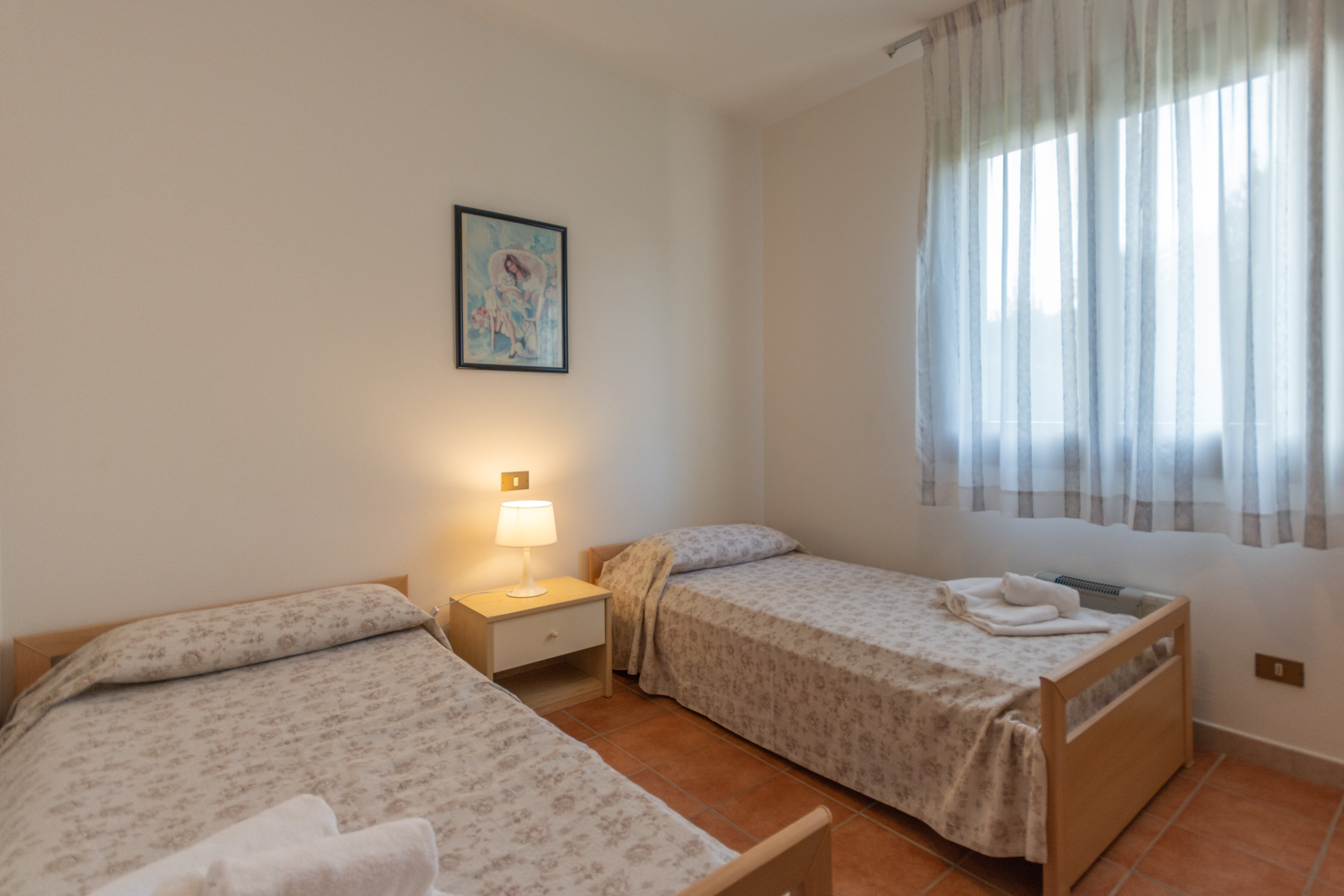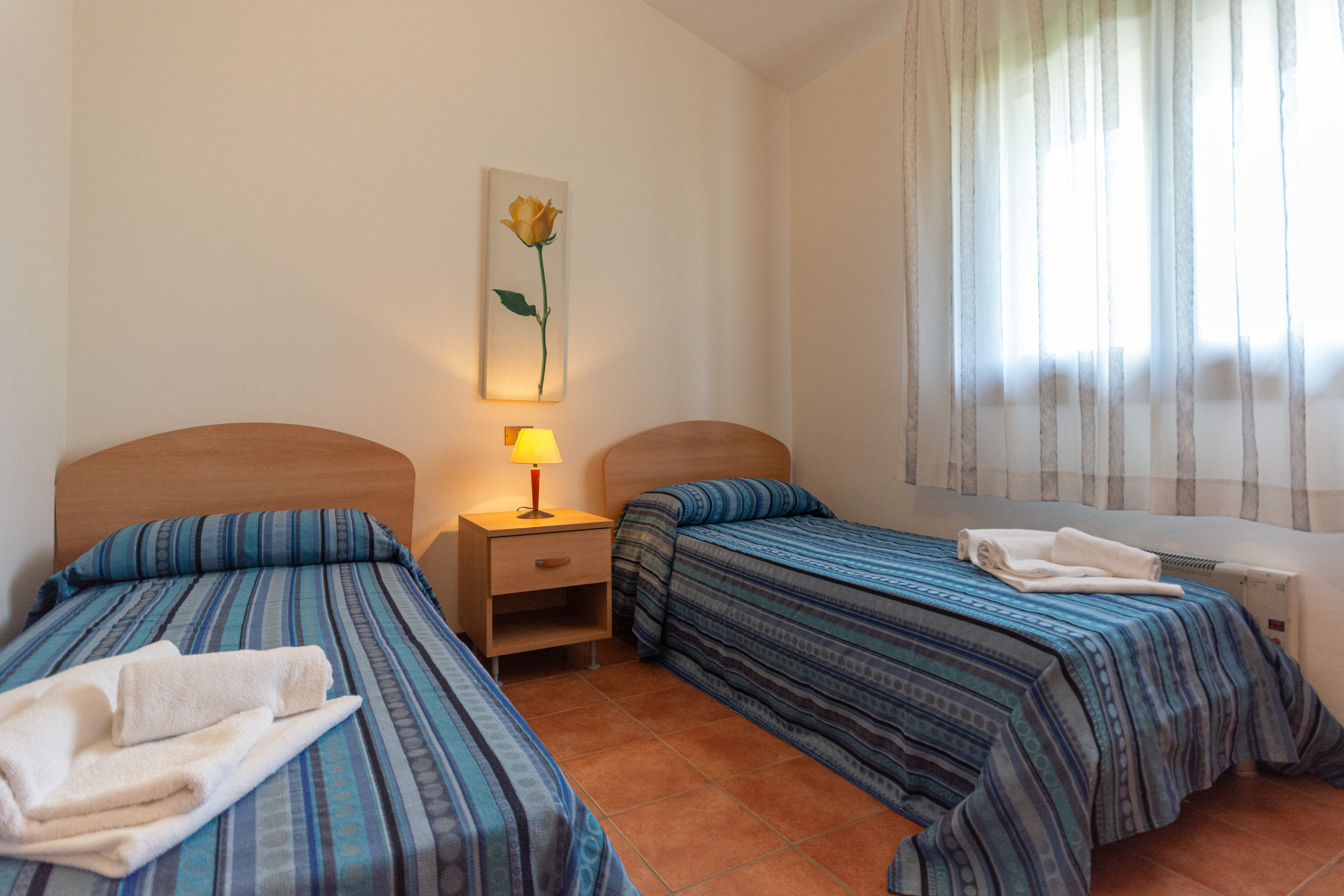 Een slaapkamer met twee eenpersoonsbedden op de eerste verdieping