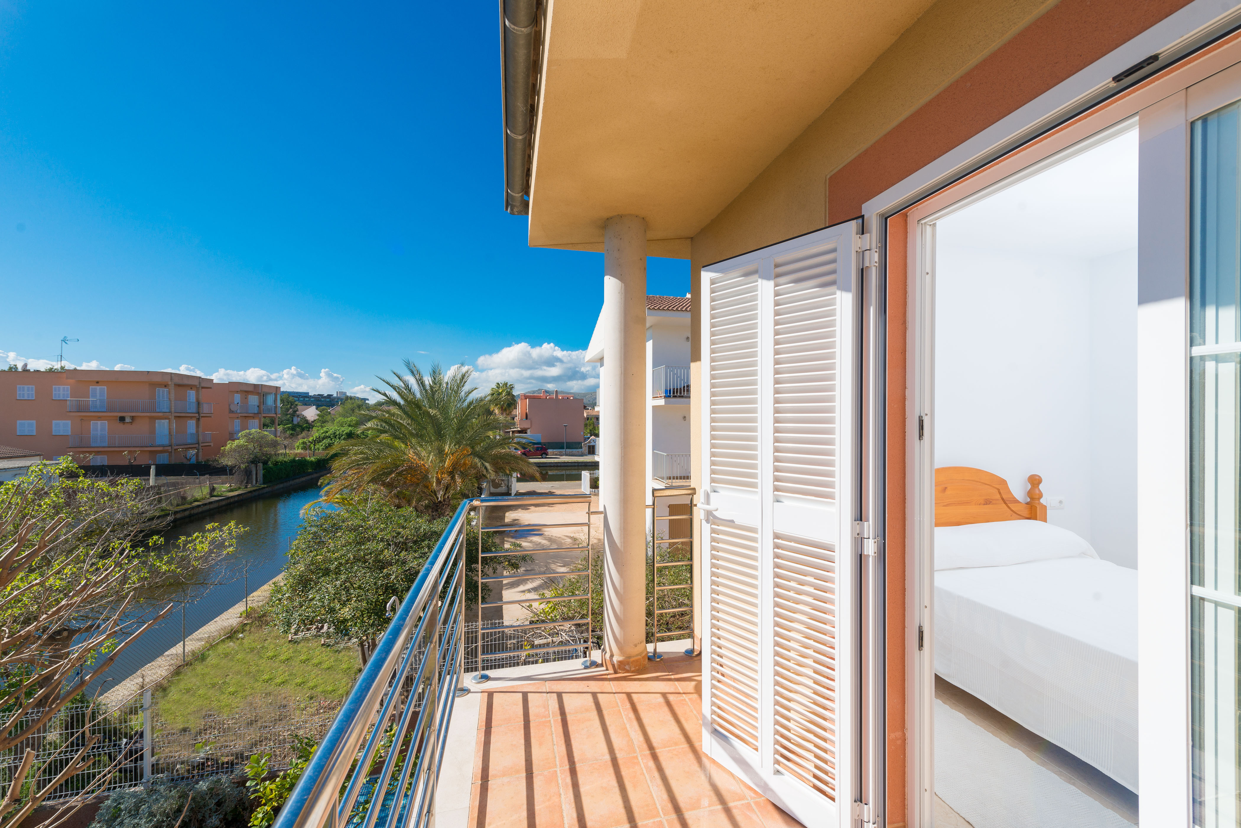 Het huis van ongeveer 118 m² is verdeeld over twee verdiepingen en beschikt over airconditioning op elke verdieping. Op de begane grond vindt u de woonkamer die de ruimte deelt met de eetkamer, waar twee comfortabele banken staan waar u uw favoriete series of films kunt kijken op de satelliet-tv en een tafel met 6 stoelen waar u in een frisse en lichte sfeer kunt lunchen of dineren. De aparte gaskeuken is modern en praktisch en beschikt over alles wat u nodig heeft om uw beste gerechten te bereiden; daarnaast is er op dezelfde verdieping een badkamer met een normale douche. De wasruimte is apart en beschikt over een wasmachine, strijkijzer en strijkplank. Boven zijn er drie slaapkamers, waarvan twee met een tweepersoonsbed, kledingkasten en toegang tot een klein balkon met vrij uitzicht op het kanaal en een derde slaapkamer met twee eenpersoonsbedden en een kledingkast. Een kinderbedje en kinderstoel zijn aanwezig voor onze jongste gasten. De badkamer op deze verdieping is praktisch en modern en heeft een normaal bad.