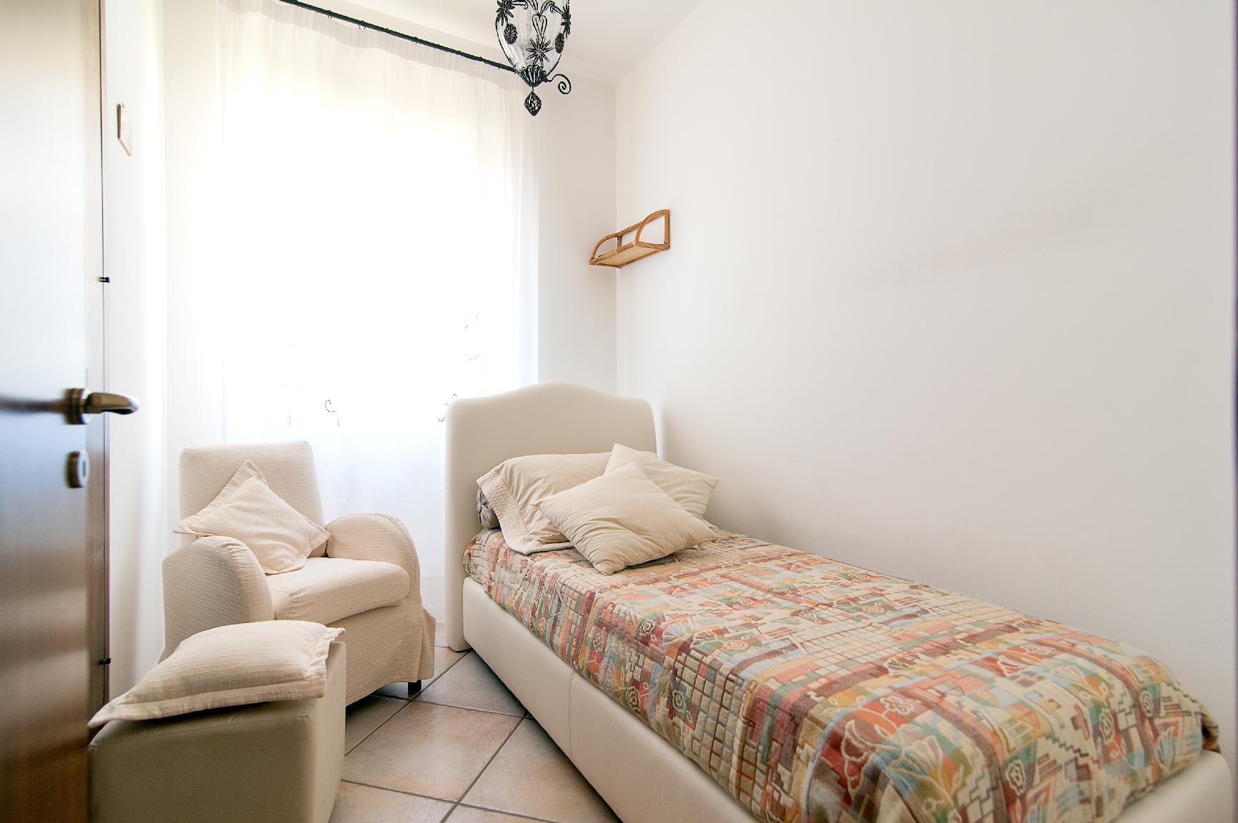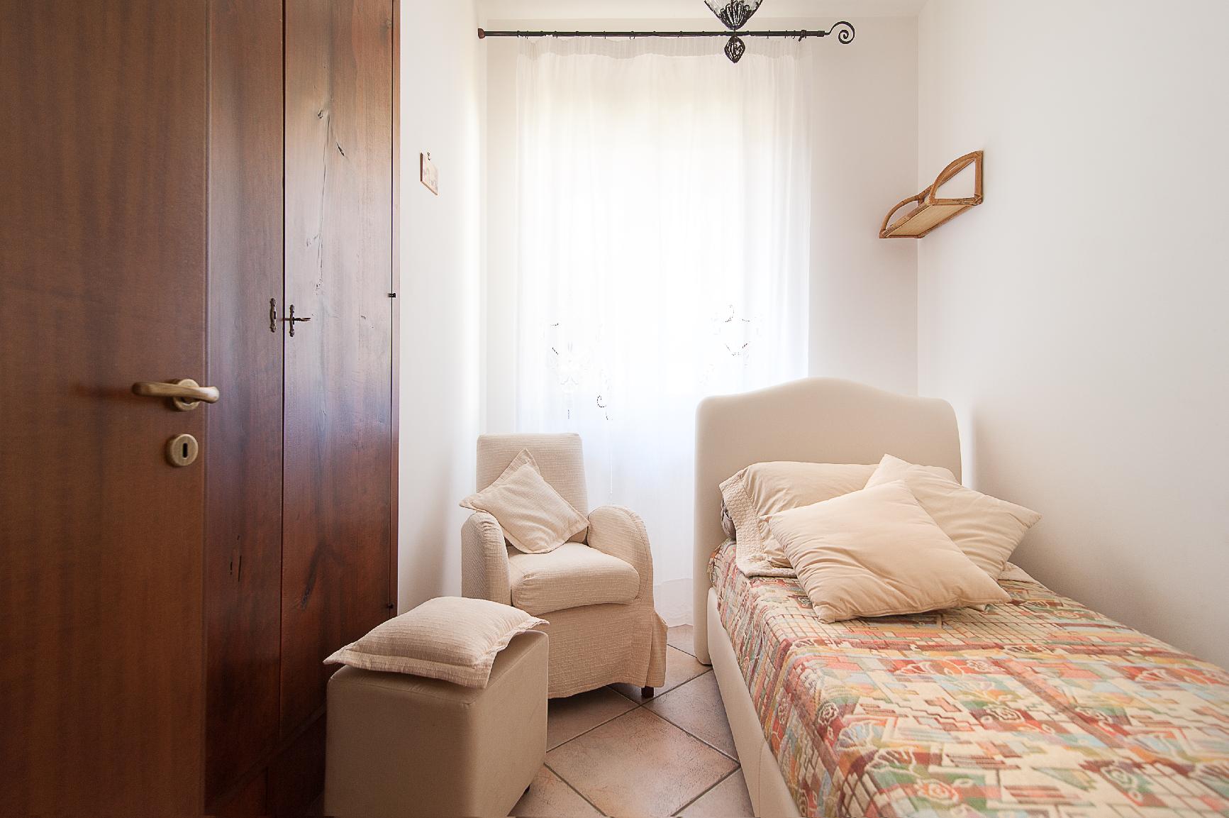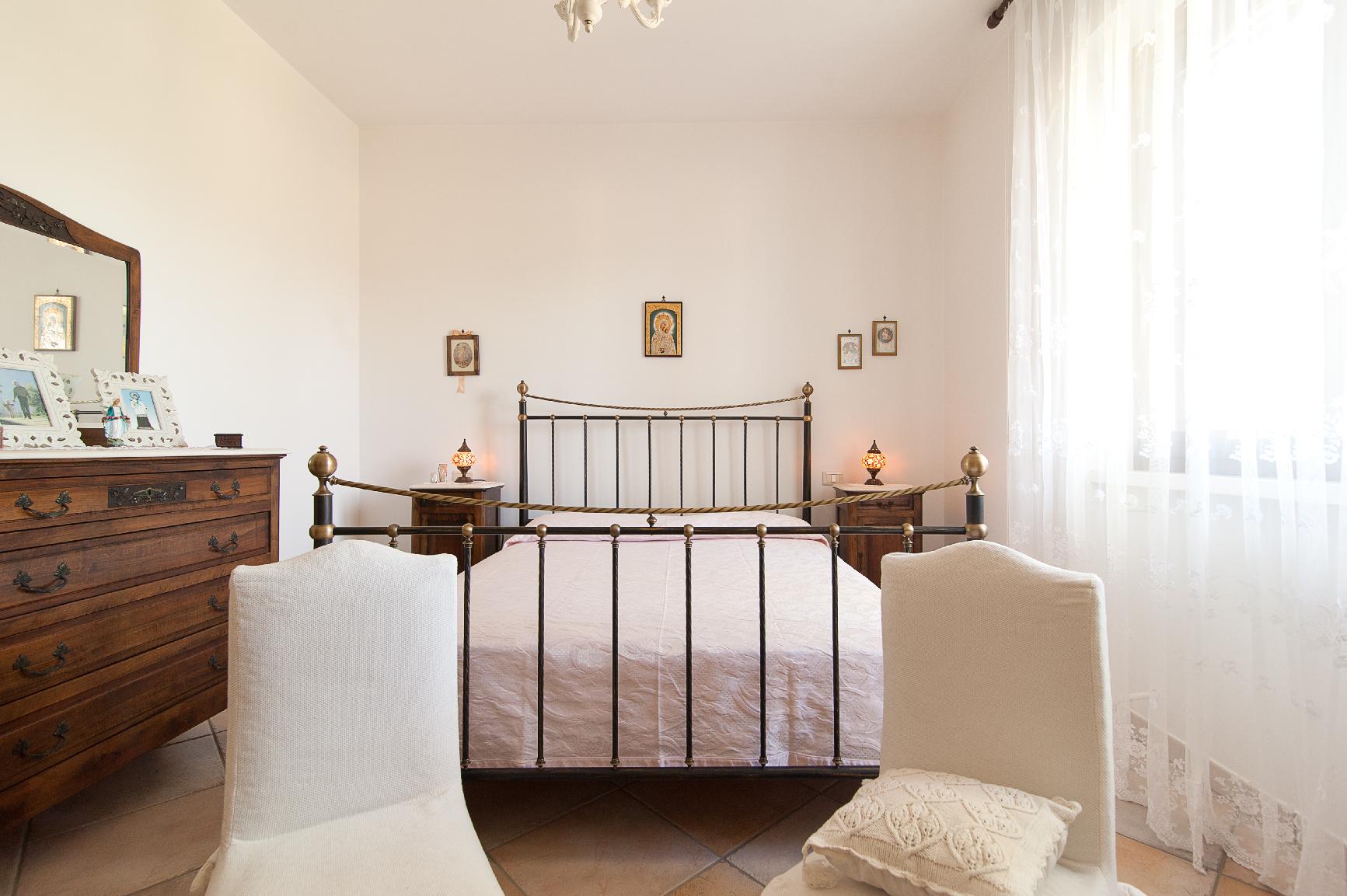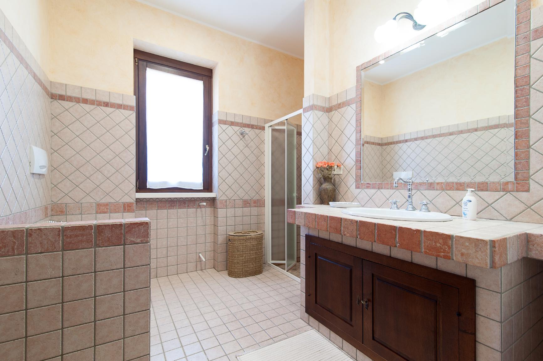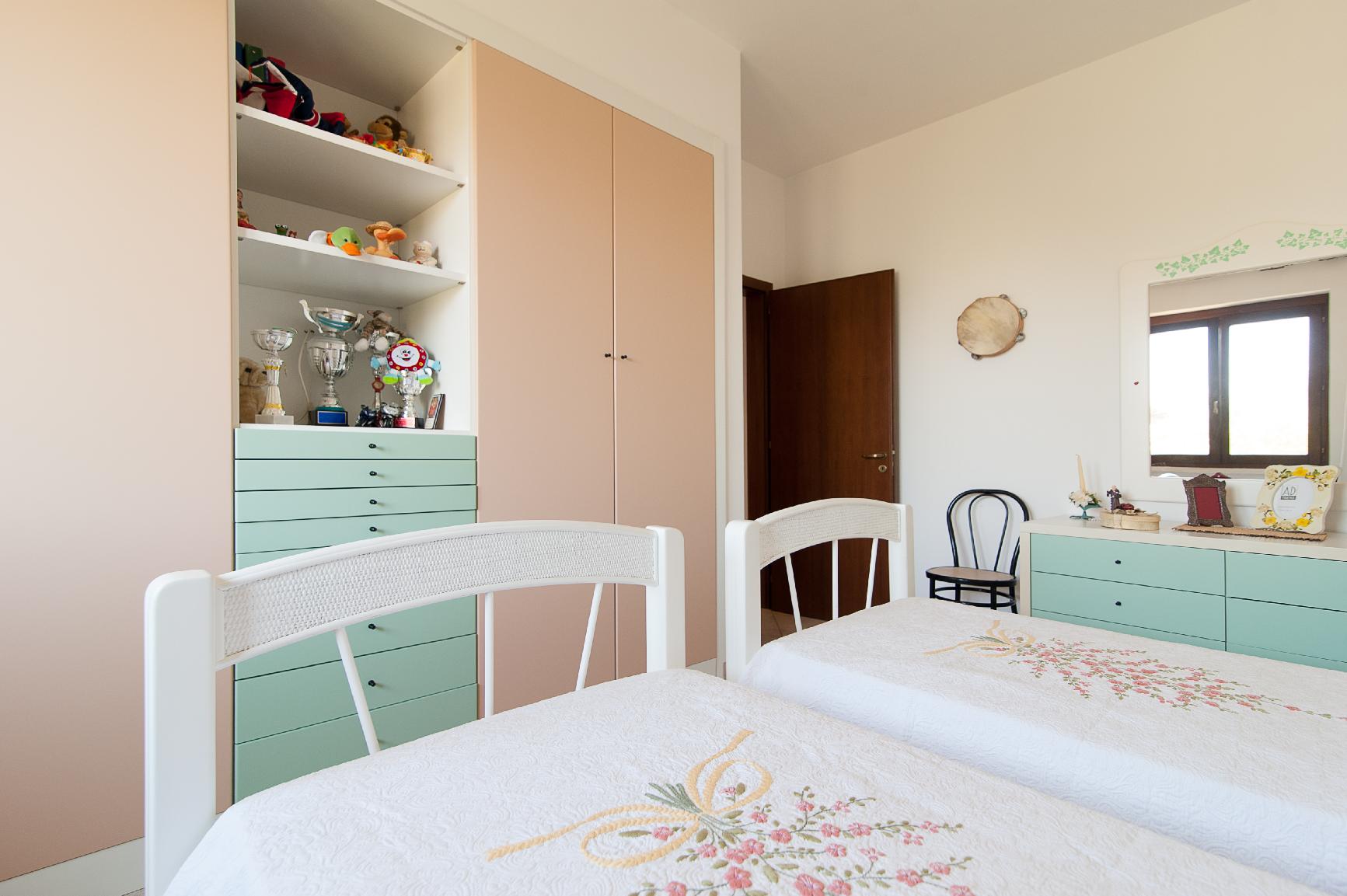 Deze ruime villa biedt comfortabele accommodatie voor maximaal zes gasten. Het interieur beschikt over drie slaapkamers en twee badkamers, wat voldoende ruimte biedt voor gezinnen of groepen. De slaapmogelijkheden omvatten een tweepersoonsslaapkamer, een eenpersoonskamer en een derde slaapkamer met drie eenpersoonsbedden. Beide badkamers zijn volledig uitgerust.