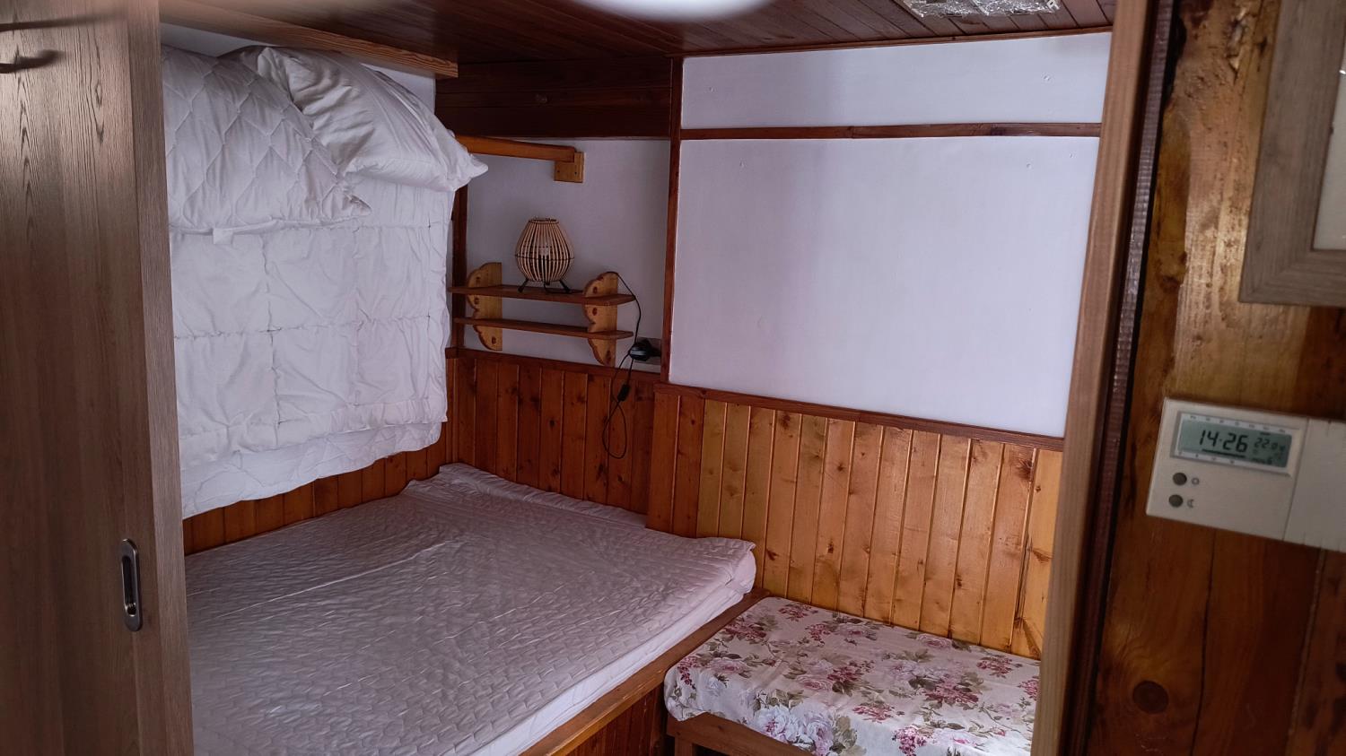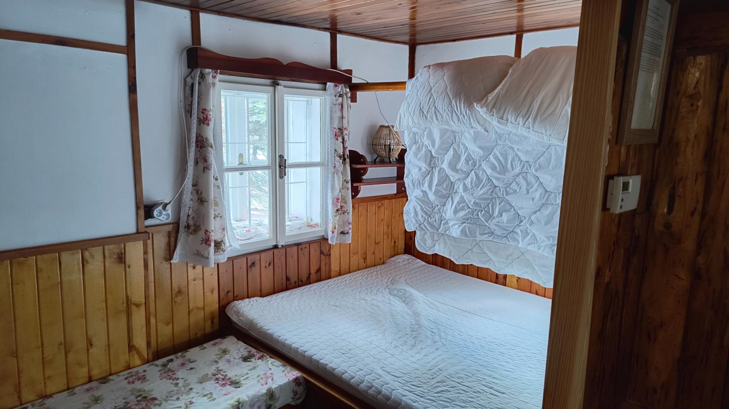 Op de begane grond is er een woonkamer met een bank en een open haard, een ruime eetruimte met houten banken en een tafel, en een volledig uitgeruste keuken met een koelkast, vriezer, elektrische kookplaat met oven, magnetron, koffiezetapparaat, waterkoker en veel keukengerei. Op deze verdieping bevindt zich ook een vierpersoons slaapkamer met twee tweepersoonsbedden, een kleine kelder met een tafelvoetbaltafel, een badkamer met toilet, douche en wastafel, evenals een stookruimte en een voorraadkamer.