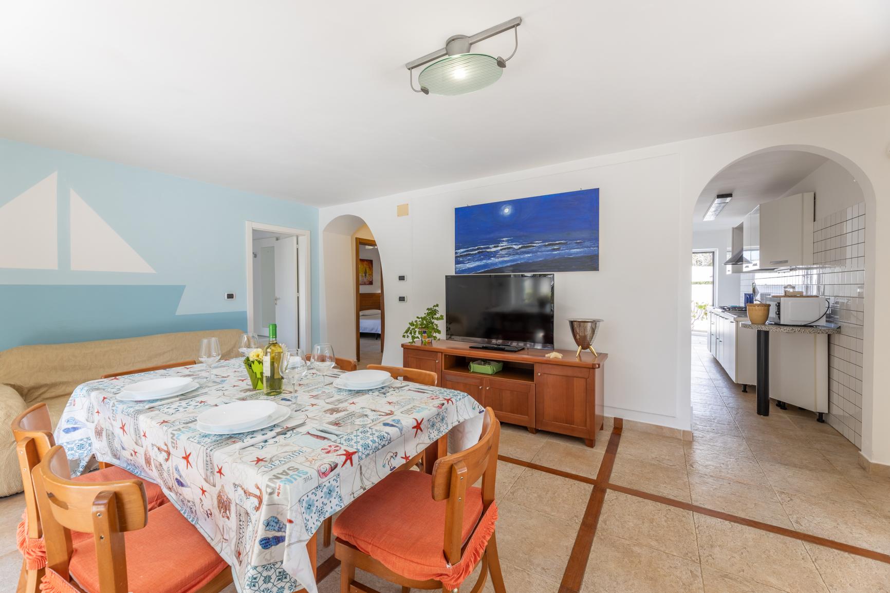 VOORZIENINGEN: Villa Vela Bianca is gelegen op de begane grond en beschikt over: Balkon, Tv, Kledinghangers, Satelliet Tv, Keuken, Oven, Vaatwasser, Magnetron, Koelkast, Diepvriezer, Barbecue, Tuinmeubilair, Kinderspeelplaats, Bidet, Strijkijzer en strijkplank, Ligbad, Wasmachine, Haardroger, Douche, Hangmat(ten)