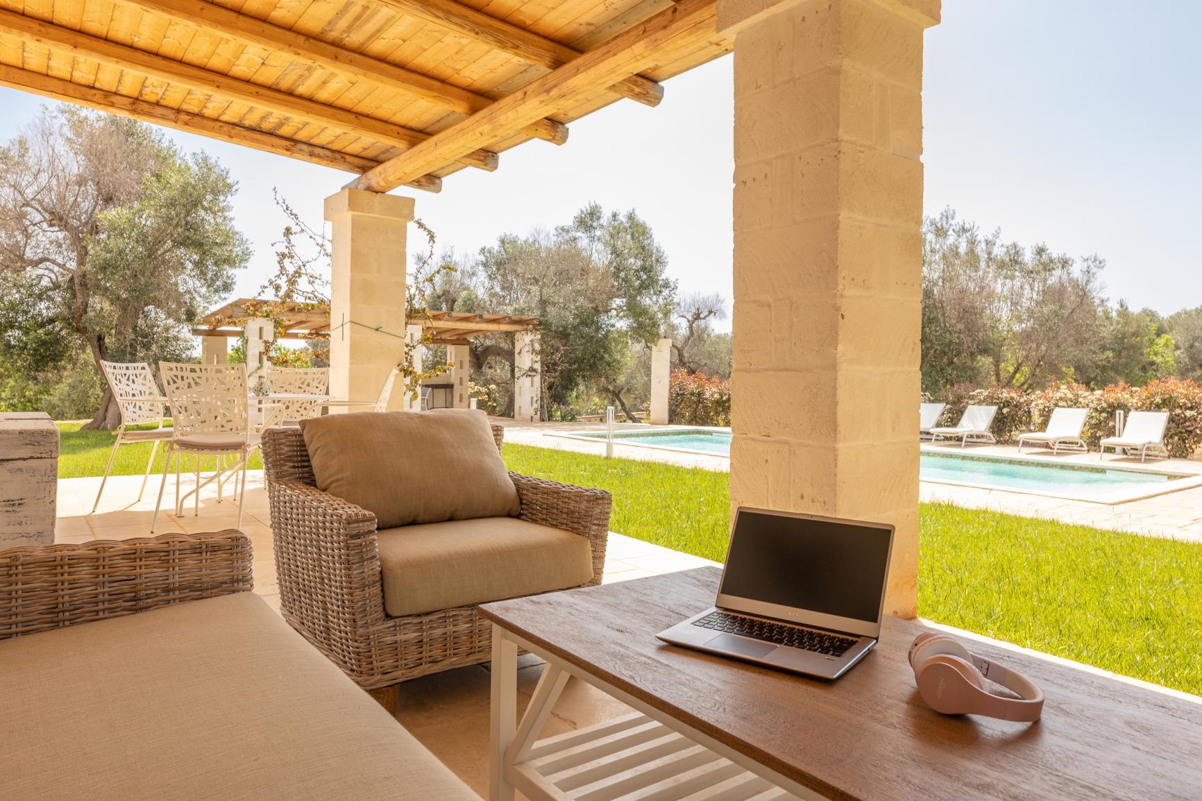 Voor ontspanning in de buitenlucht biedt de villa een privébalkon, tuinmeubilair, een prieel en een barbecuegedeelte. Een hangmat draagt bij aan de serene sfeer en is perfect om te ontspannen. Extra voorzieningen zoals een wasmachine, een babybedje, horren en een bidet zorgen voor een comfortabel en aangenaam verblijf.