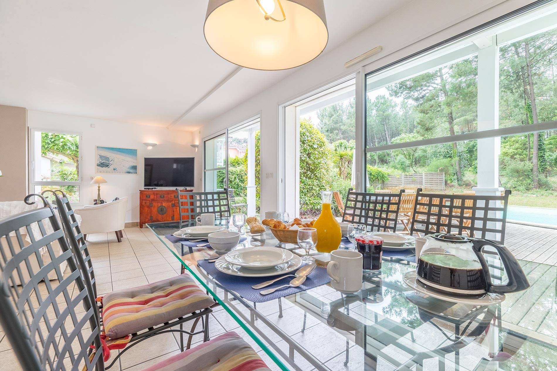 Uw villa met zwembad en een oppervlakte van 100-130m2 ligt slechts 900m van het witte zandstrand aan de Atlantische Oceaan, dichtbij de restaurants en winkels vanaf Moliets Plage met diverse wandel- en fietspaden door de duinen. De villa is geschikt voor 10 personen, er is een woonkamer met slaapbank, satelliettelevisie en open haard in sommige villa's. In de compleet ingerichte keuken staat een afwasmachine, wasmachine, droger, koelkast en diepvries, oven en magnetron. U kunt als gast gebruik maken van een mooi terras met tuinmeubilair, met toegang tot het zwembad. Deze villa is praktisch en volledig ingericht met vier slaapkamers, elk met een tweepersoonsbed of twee eenpersoonsbedden of een stapelbed, badkamer met bad, twee doucheruimtes en twee toiletten. Sommige villa's hebben een extra doucheruimte en toilet. Gebruik van elektriciteit en water is niet bij de prijs inbegrepen en betaalt u op locatie.