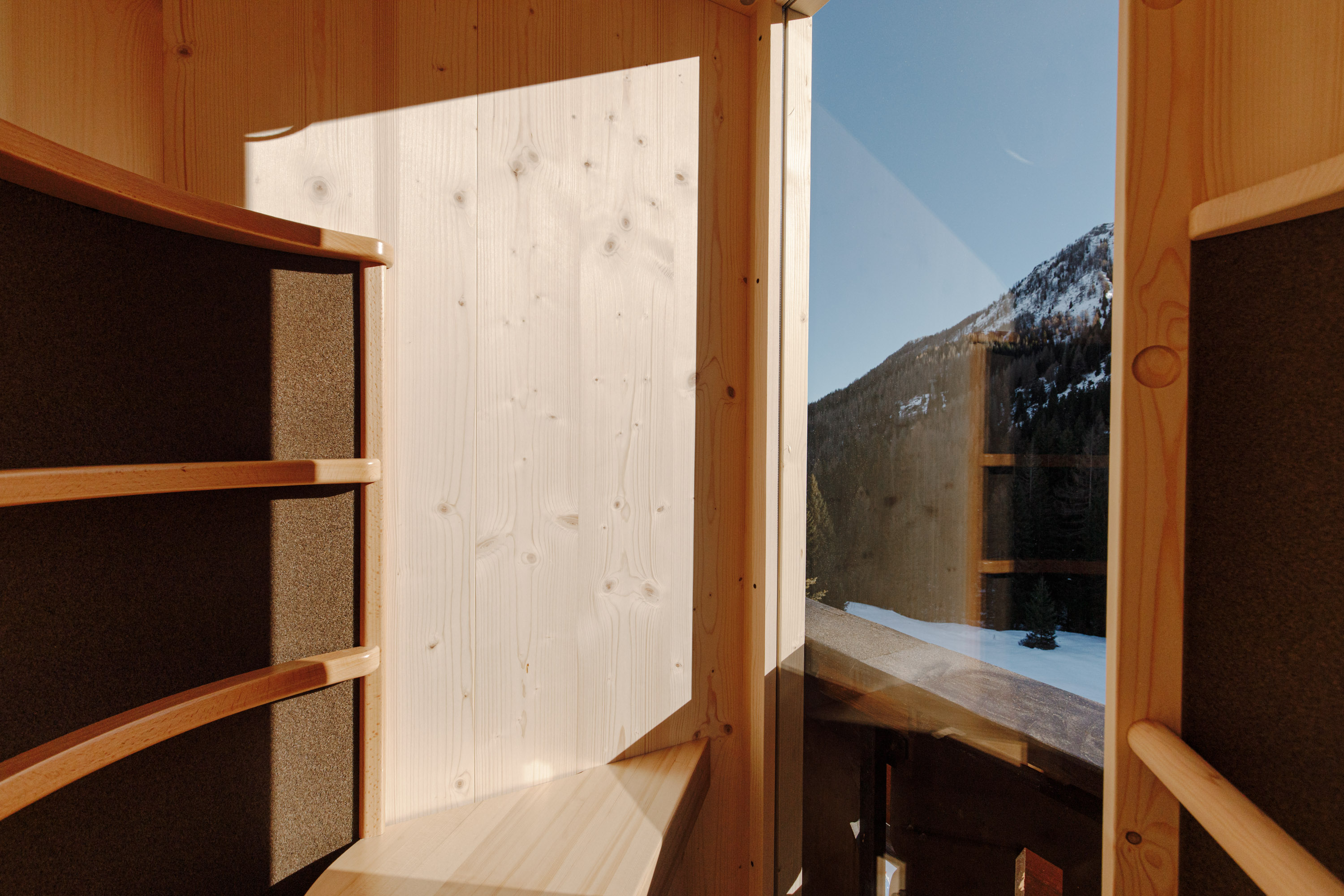 De privé-biosauna bevindt zich op het balkon en biedt momenten van ontspanning met een prachtig uitzicht op de Dolomieten.