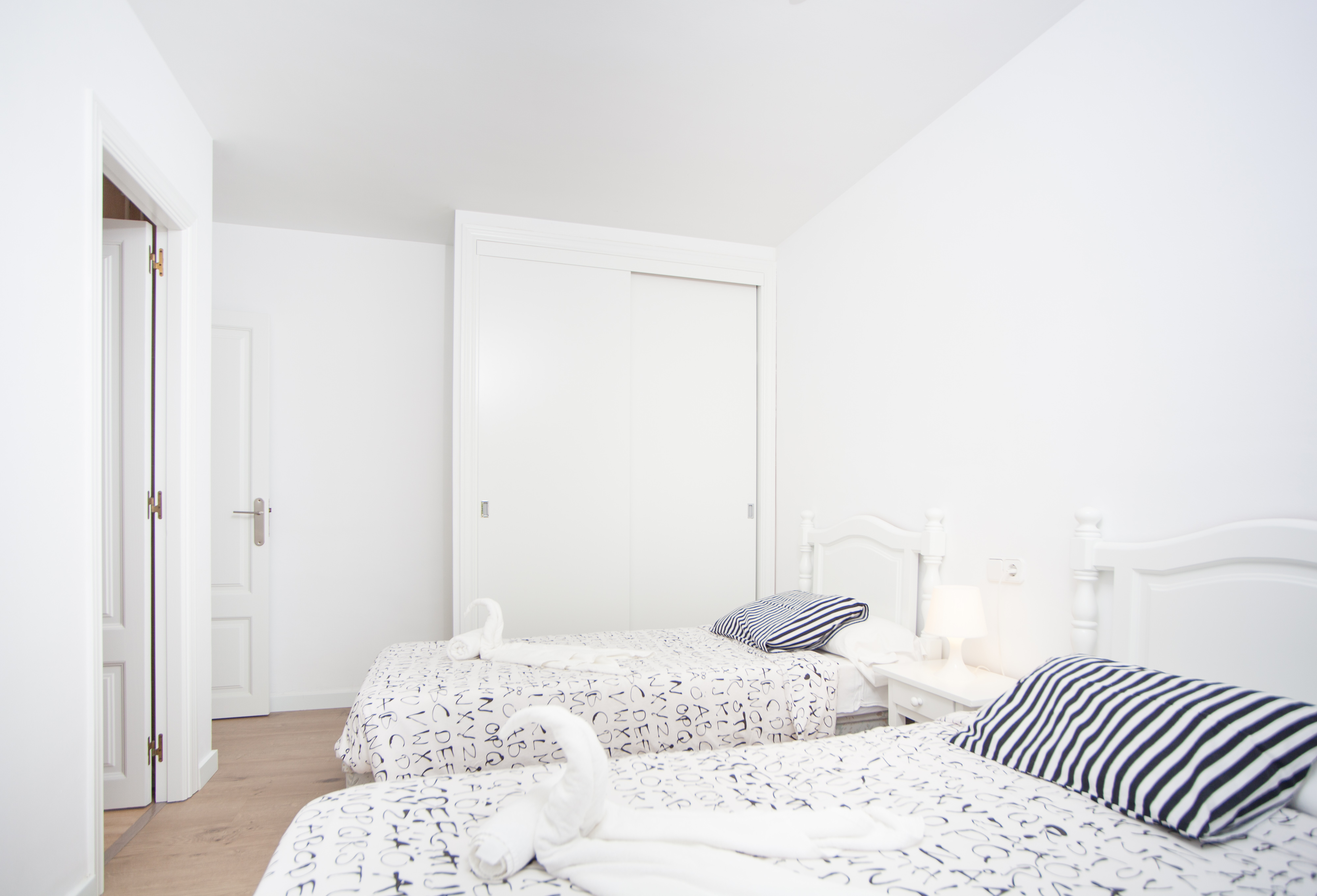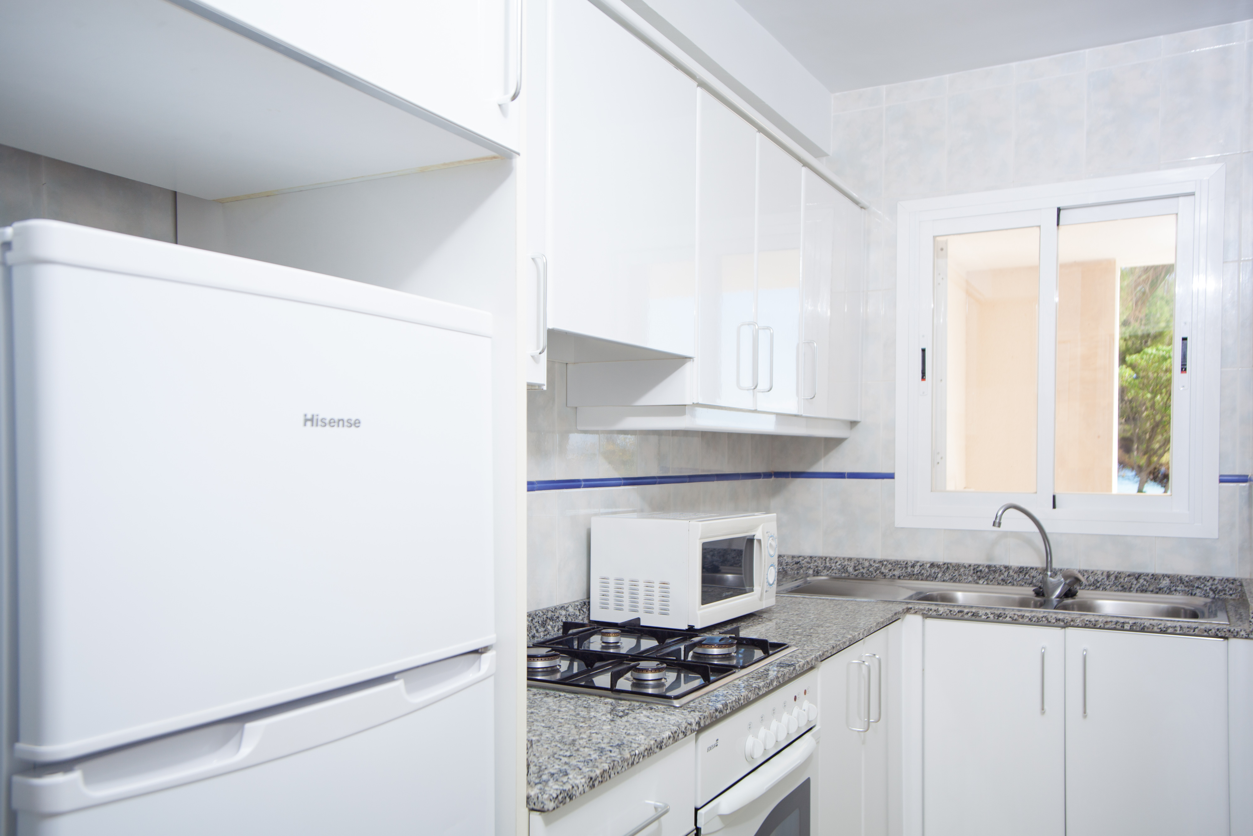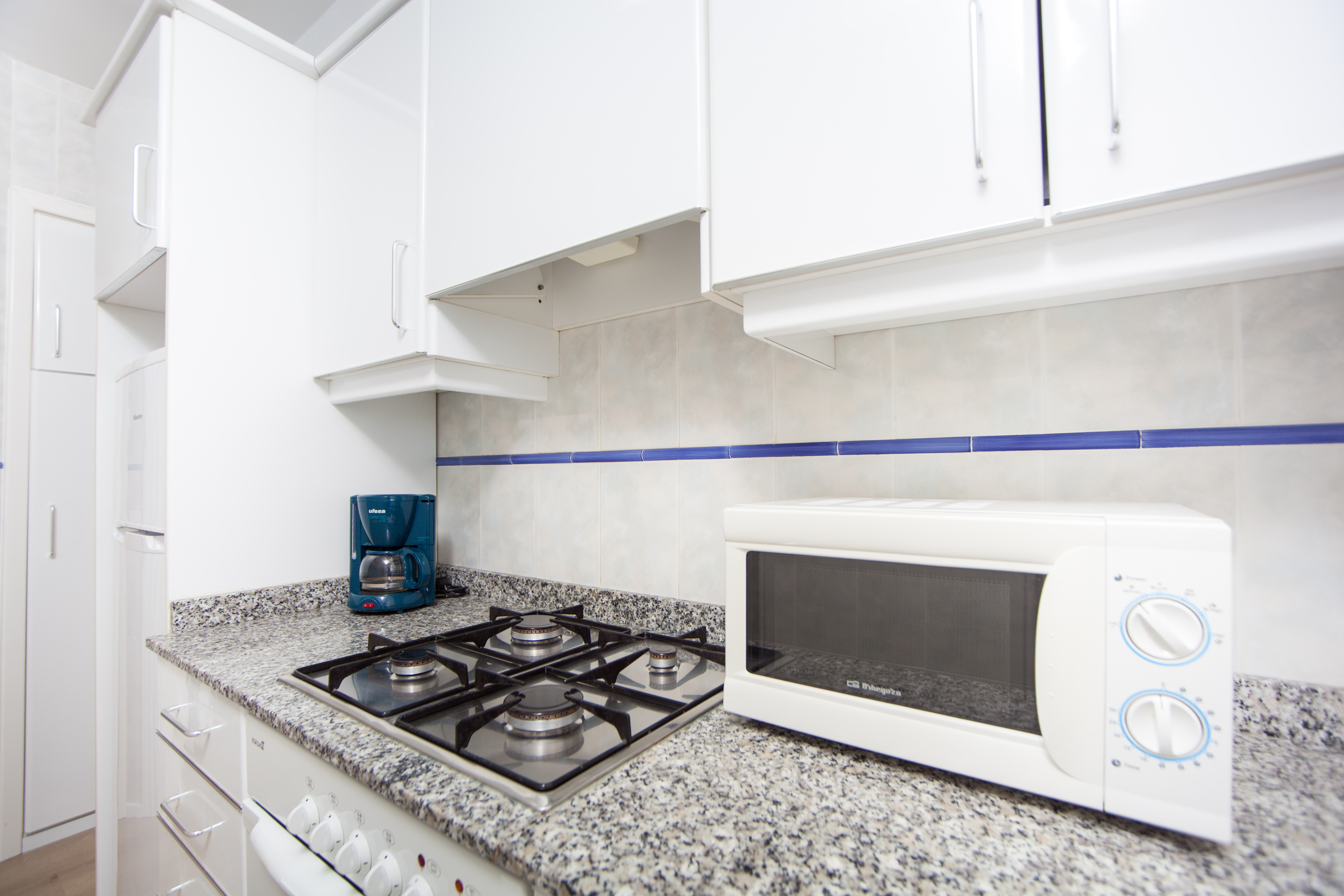 Als je het appartement binnenkomt vind je een moderne en lichte woonkamer met TV-Sat en AC. De keuken met gasfornuis is volledig uitgerust om je beste gerechten te bereiden. Als je liever binnen eet, kun je de tafel van de veranda nemen. Er zijn twee slaapkamers met een kast, een met een tweepersoonsbed en de andere met twee aparte bedden, airconditioning en een en-suite badkamer met een bad. De tweede badkamer in het huis heeft een douche. We kunnen een kinderbedje en een kinderstoel voor je klaarzetten als je met je kinderen reist. Je vindt er een gedeelde wasruimte met 2 wasmachines, een strijkijzer en een strijkplank.